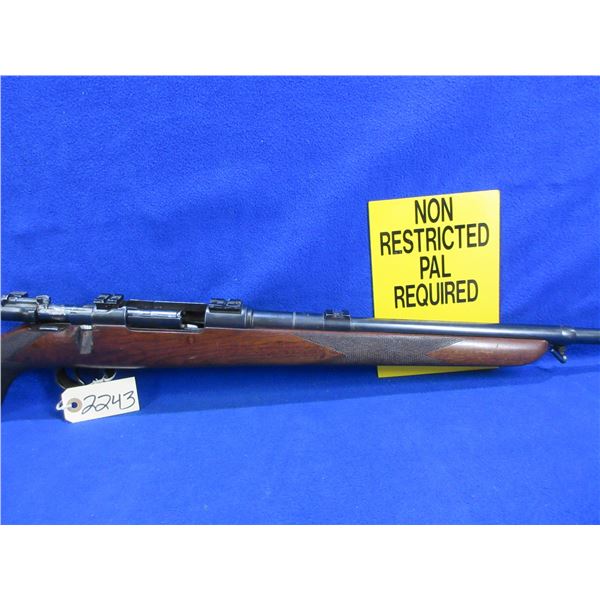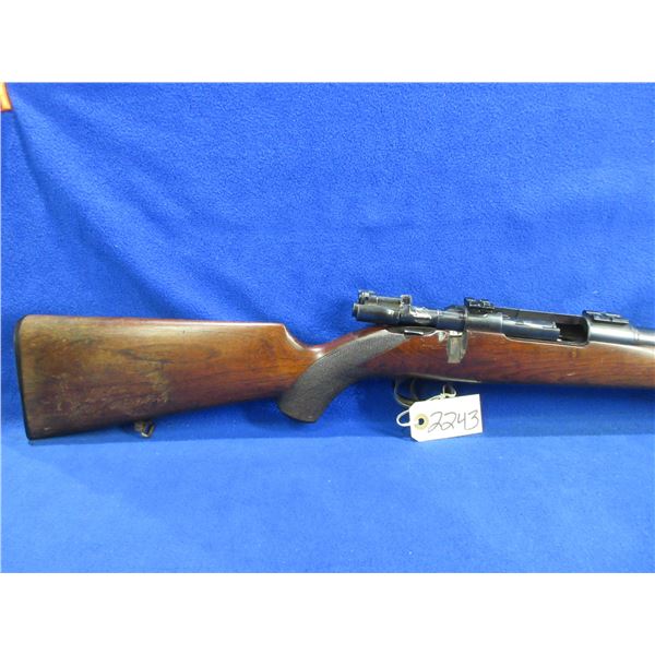 Non-Restricted - Husqvarna Model M96 in 9.3x62 - This bolt action rifle with floorplate magazine is in non working order as stock is cracked in the wrist area and the bolt handle is broken off and missing. Barrel is 23 1/2", rifling is good to very good, bluing is good with some light pitting, has front sight, missing rear sight but has Weaver style bases, stock has a crack on top of the wrist area, butt plate good, comes with swivels. Ser #90190