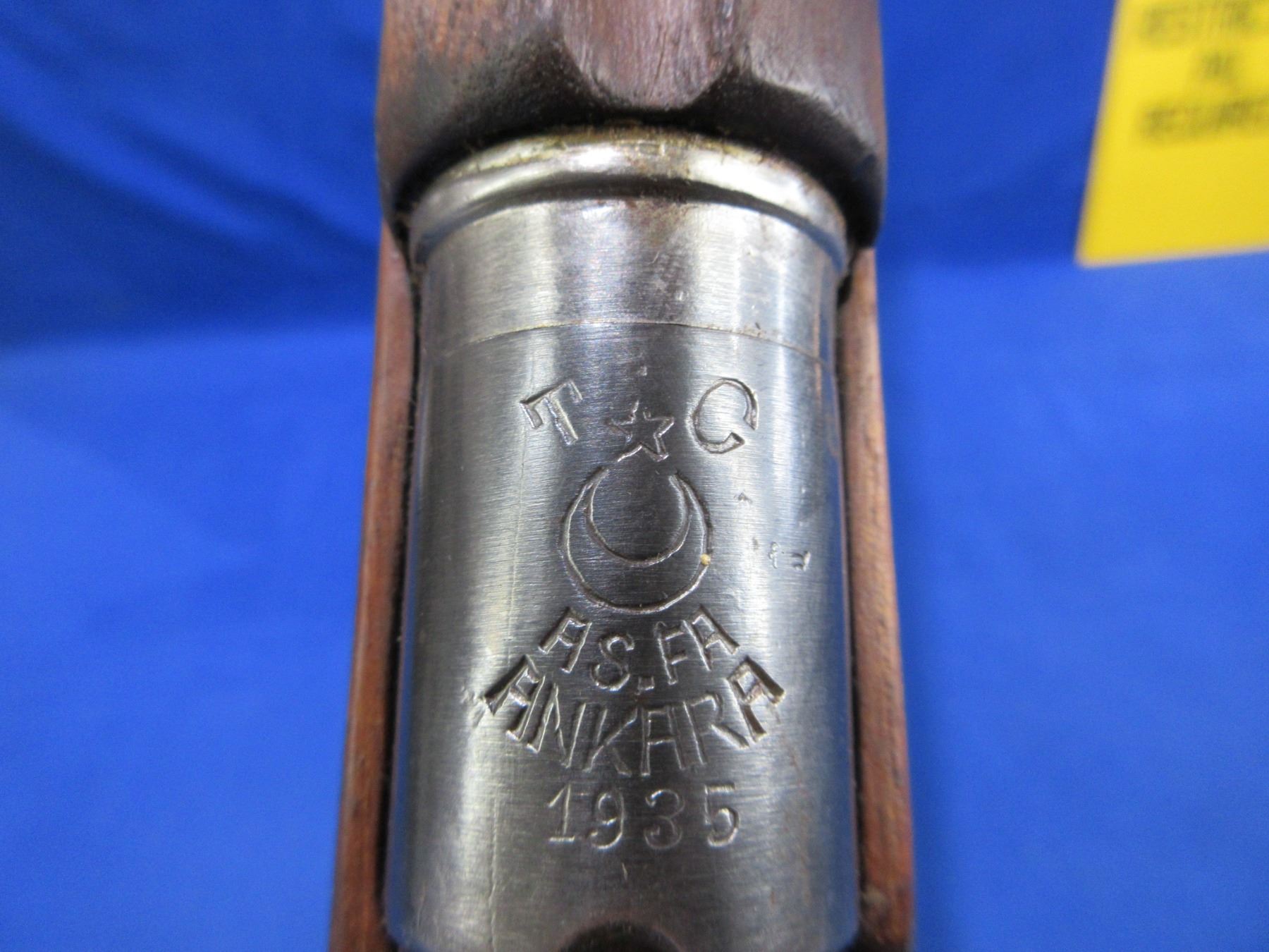 Non-Restricted - Turkish Mauser GEW 88 in appears to be 7.92x57 - Marked "TC, Crescent Moon & Star, AS.FA, Ankara, 1935". This bolt action rifle with internal magazine is in nice condition and appears to be in good to very good working order. Barrel is 21", rifling is good for age, bluing is turning grey, has both sights, full wood stock is good for age but has small hairline crack on right side of action, metal butt plate good, comes with swivels and cleaning rod. Bolt, action and rear sight appear numbers matching. Ser #2880