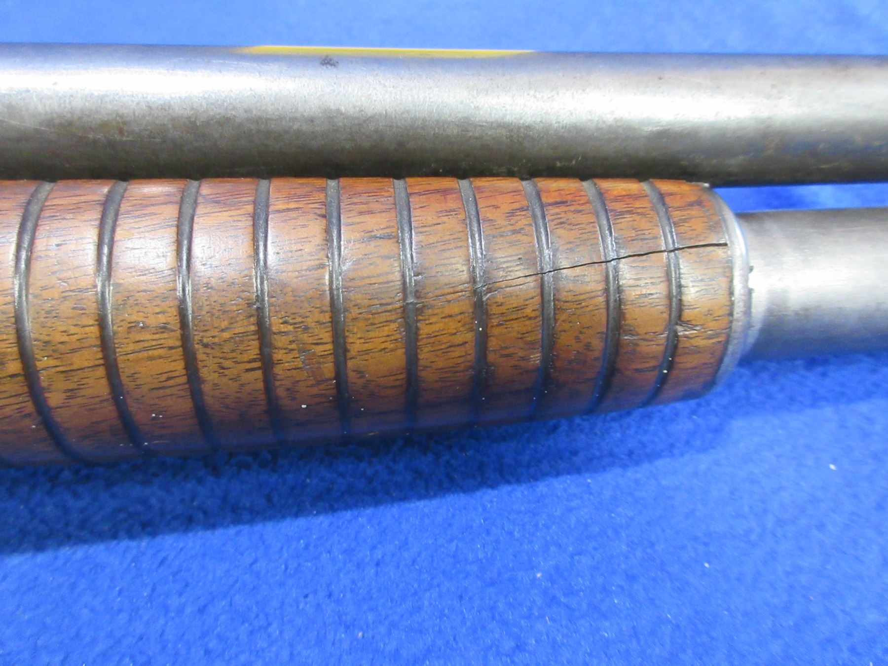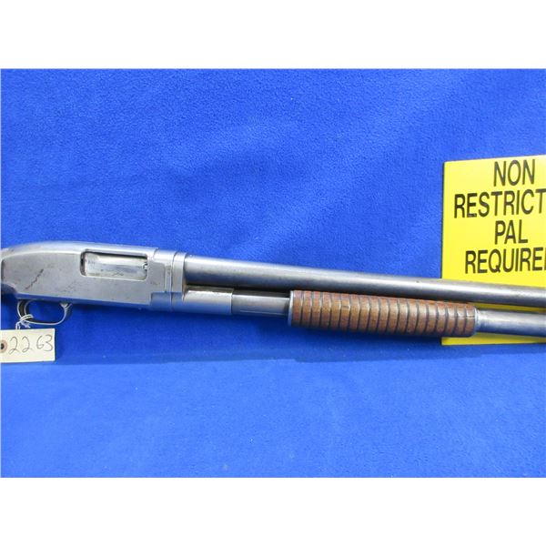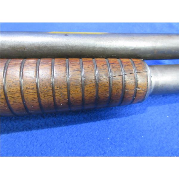 Non-Restricted - Winchester Model 12 in 12 Ga. 2 3/4" - Made in 1927, this pump action shotgun appears to be in good working order but safety is not working correctly. Barrel is 30", bore is good to very good, bluing is gone, has bead front sight, stock has a hairline crack on the left side and the bottom in the wrist area, forearm has a crack at the front on the right side, rubber recoil pad good. Ser # 492260