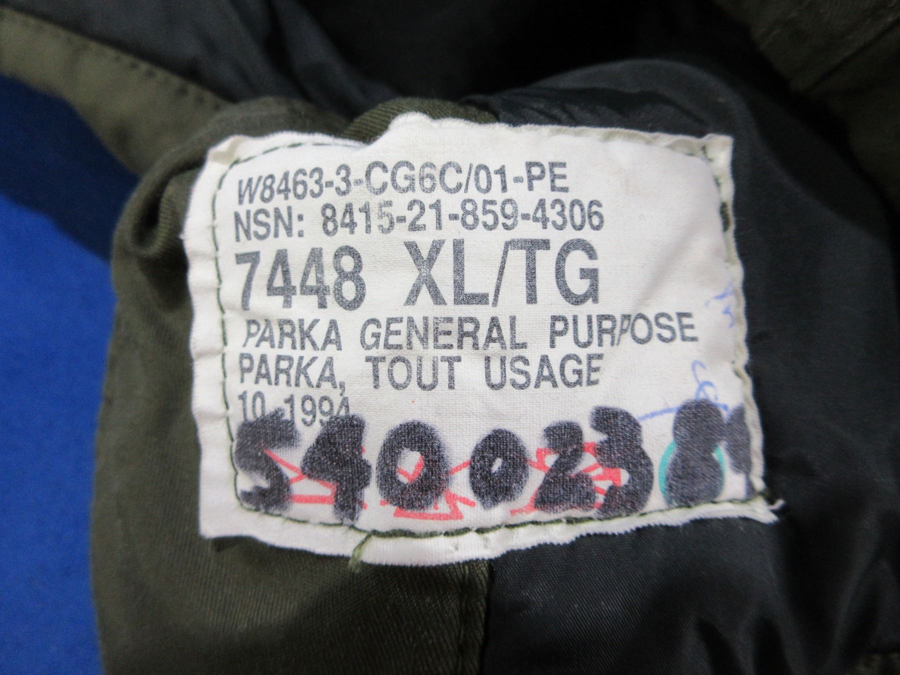 Lot 2271 Military General Purpose Parka - Size 7448 XL