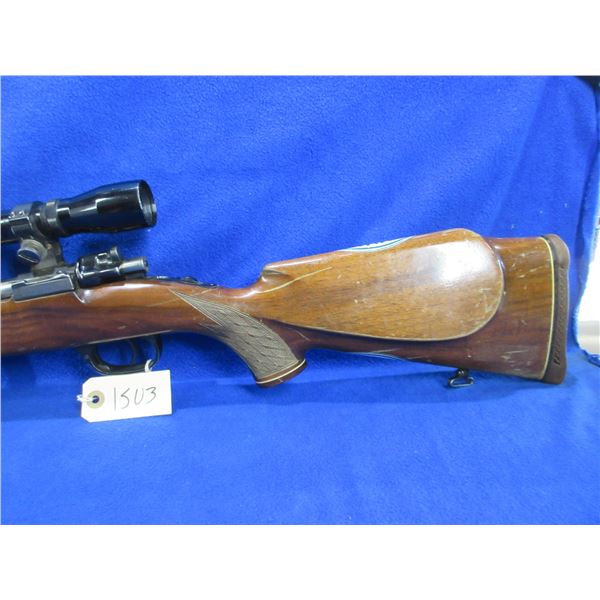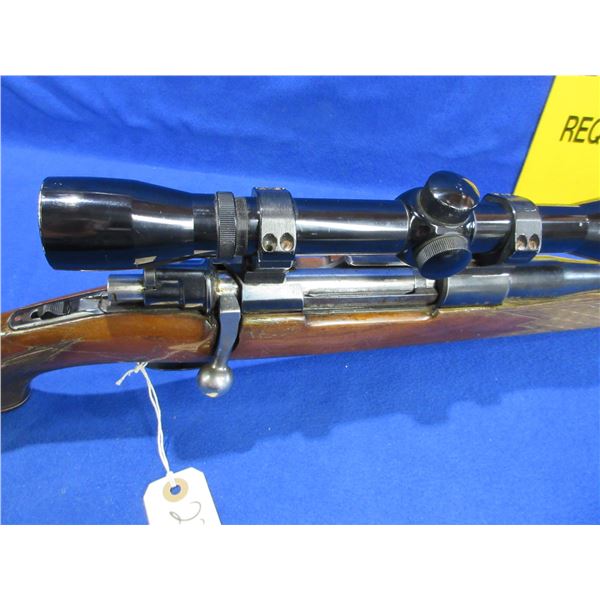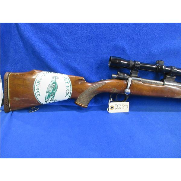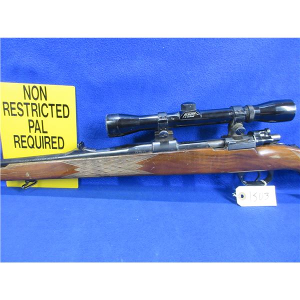Non-Restricted - Voere M98 Commercial in 6.5x55 - Made in Austria, this bolt action rifle with floorplate magazine appears to be in good to very good working order. Barrel is 24" and is ringed approx 3 1/2" from muzzle, rifling is good, bluing has some light pitting and some wear spots, has both sights and Bushnell Banner 4x scope - post reticle - appears clear, stock has a large crack in the wrist area, rubber recoil pad, comes with swivels. Ser #152825