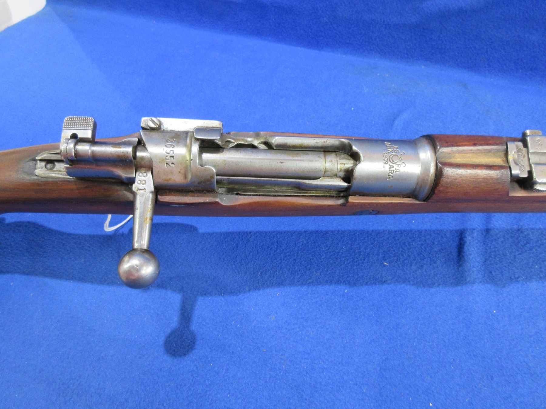 Non-Restricted - Turkish Mauser M98 1939 in 8mm - This is a rifle is in nice condition. This bolt action rifle with floorplate magazine appears to be in good to very good working order. Barrel is 29", rifling is good but dark - may need wet cleaning, bluing is gone, has both sights, stock is good to very good with usage marks, metal butt plate good, comes with swivels. Ser #36552