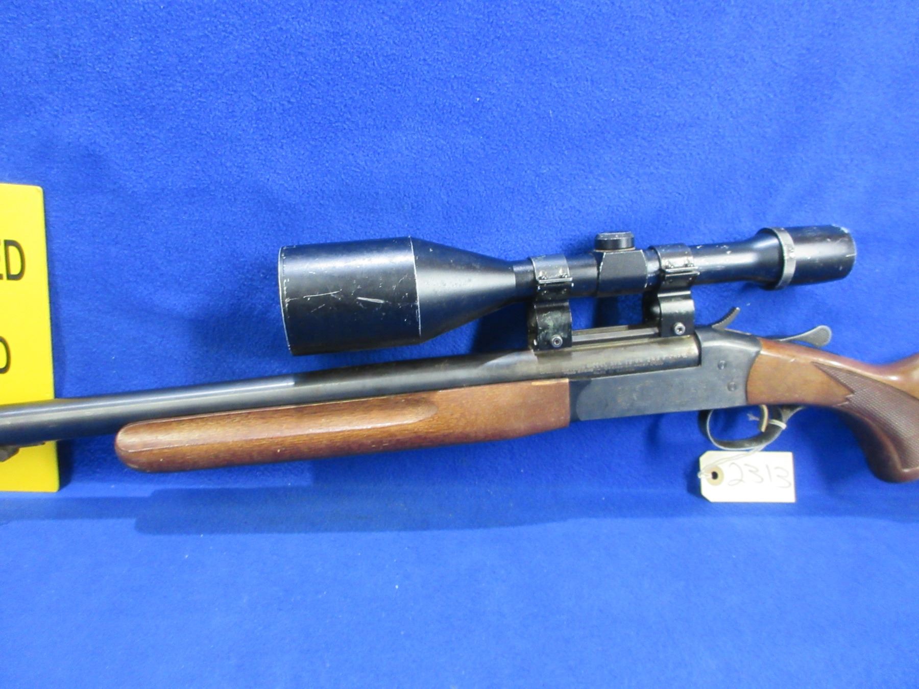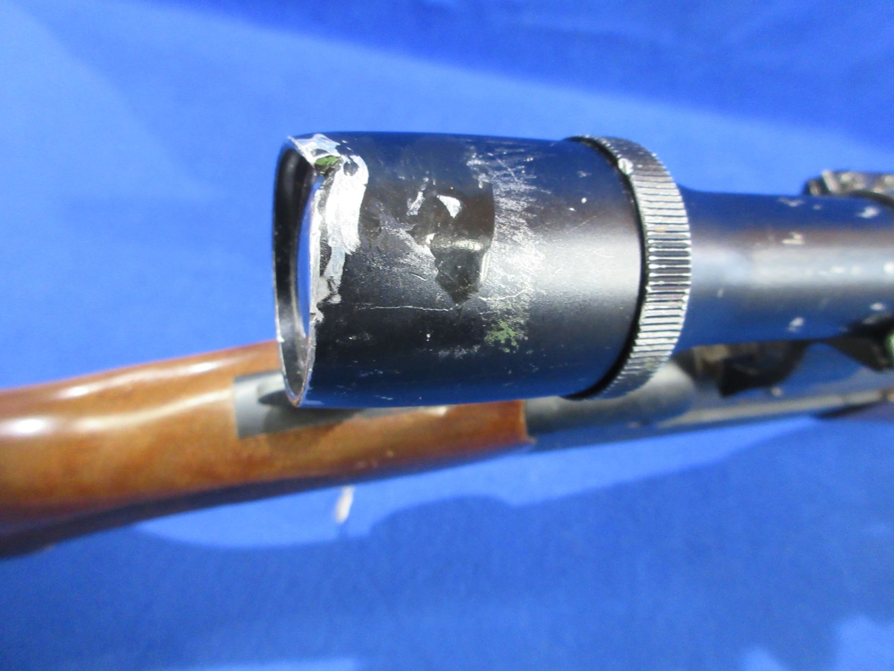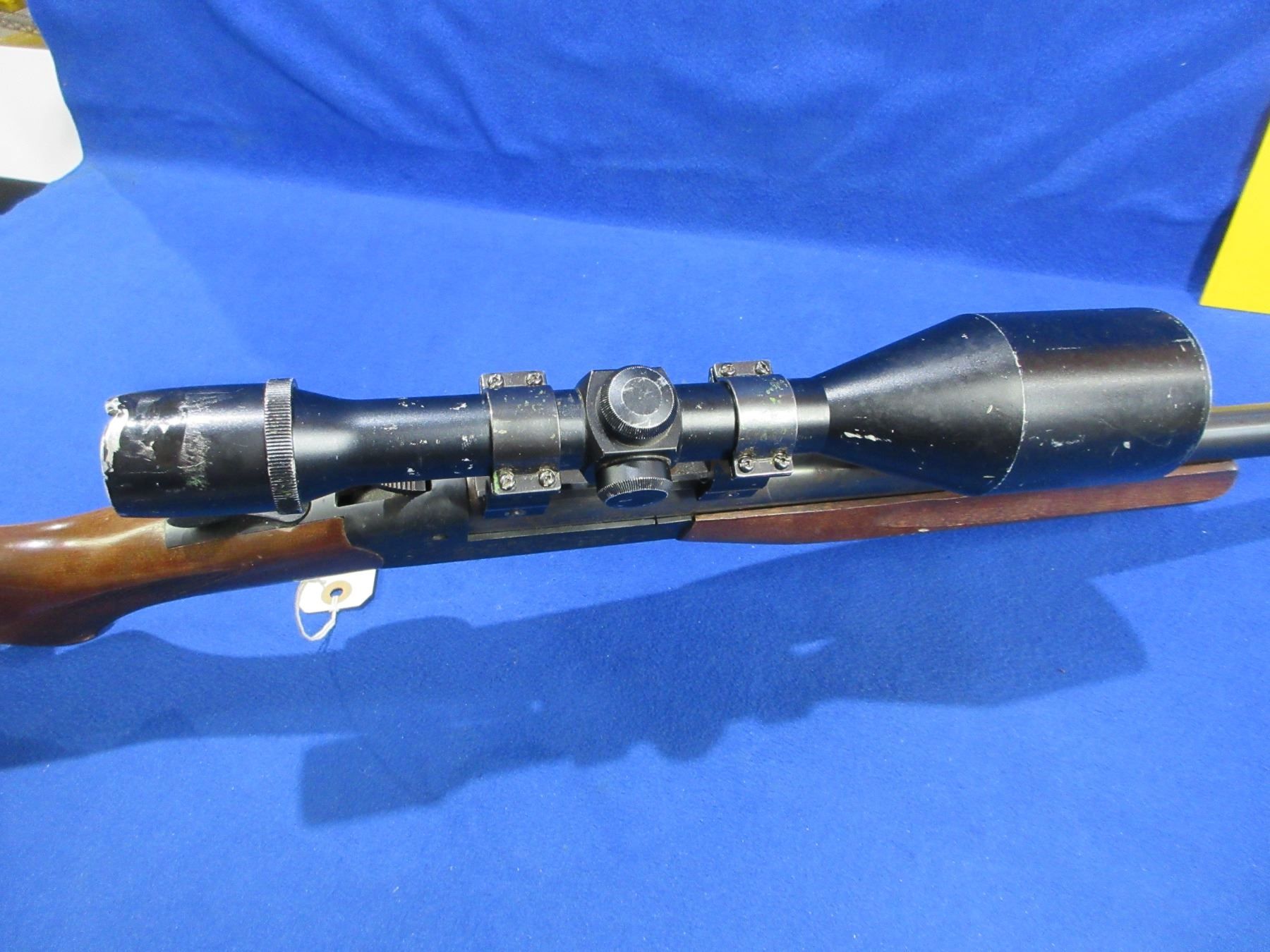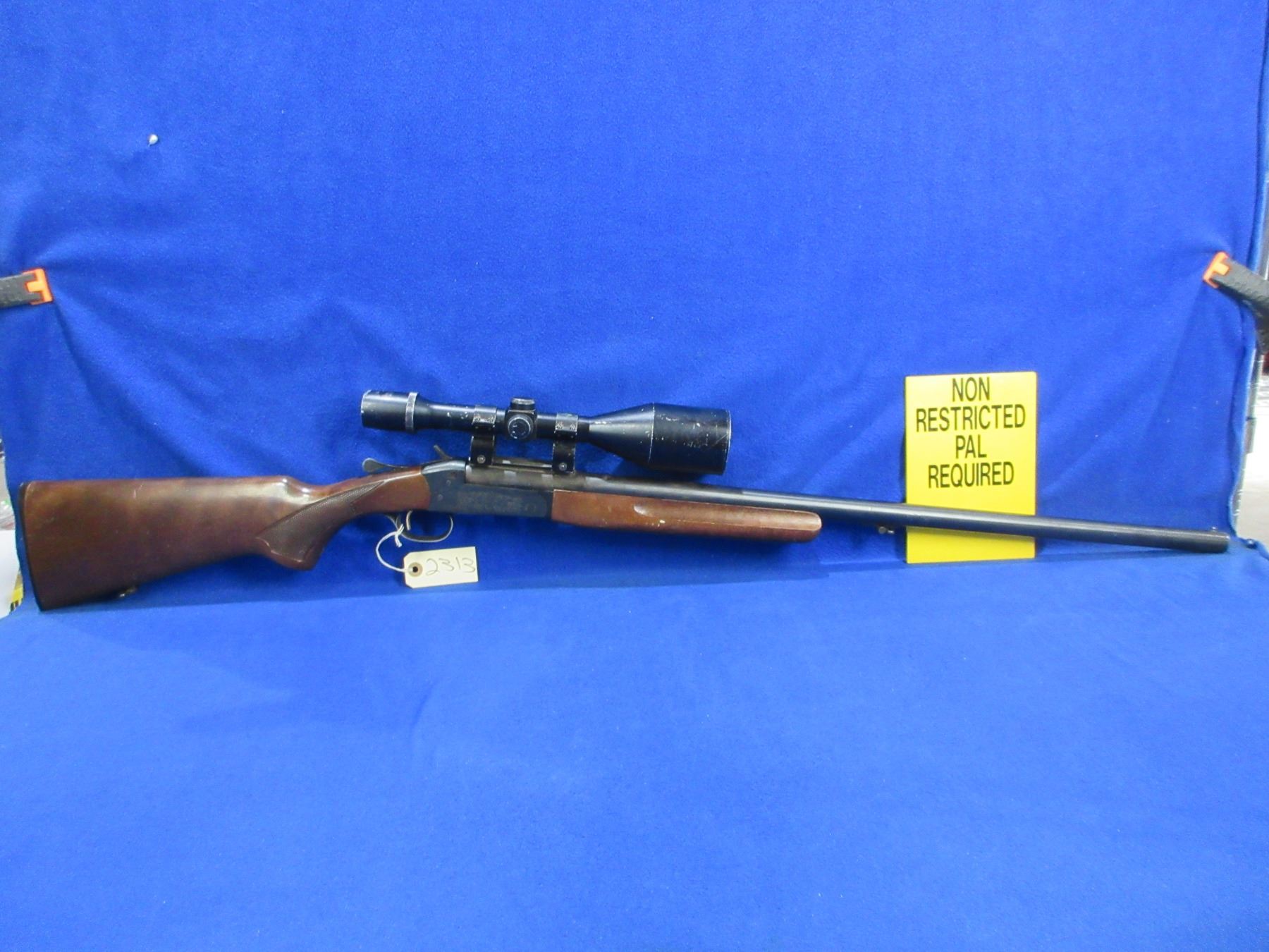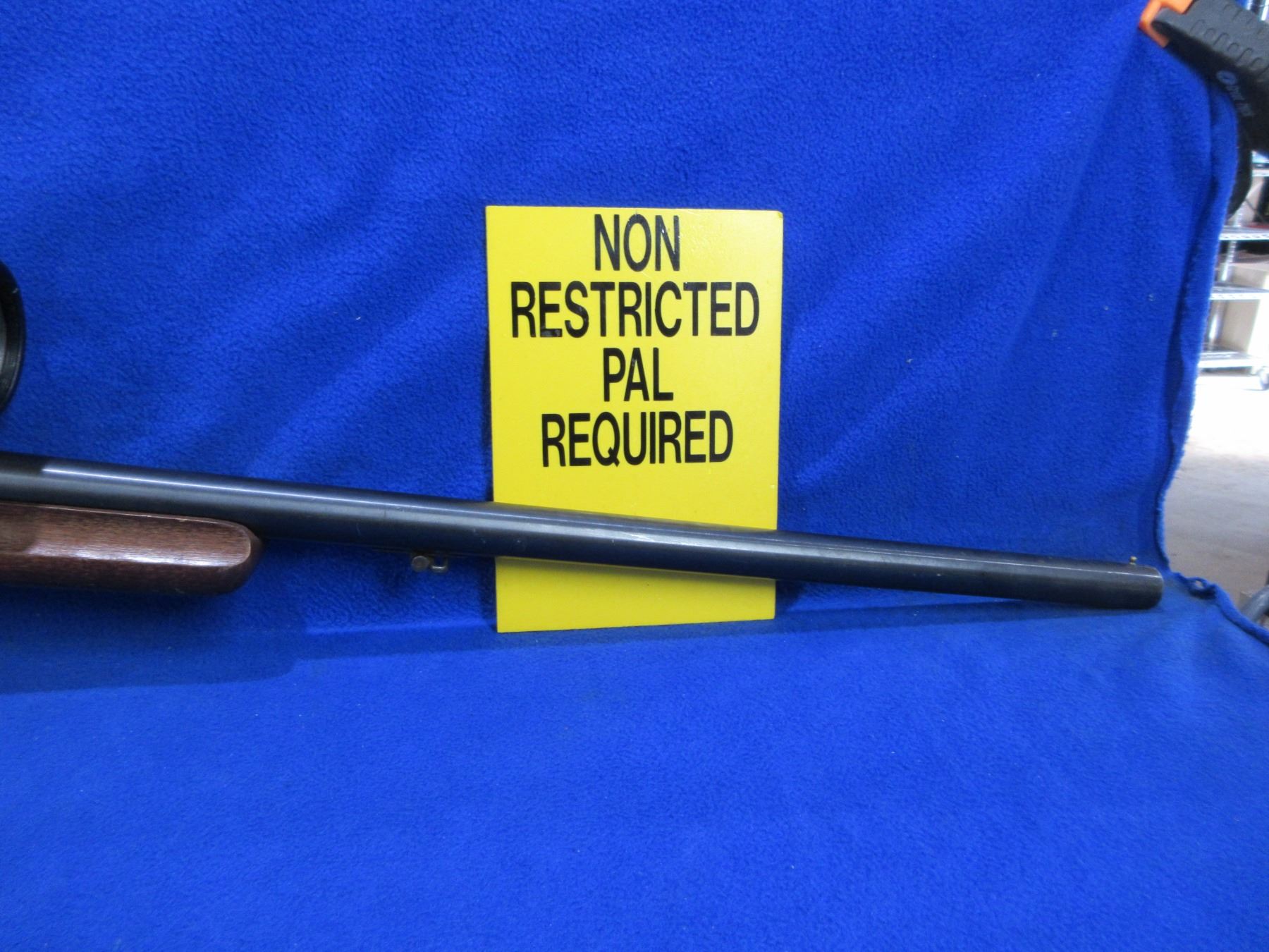 Non-Restricted - Winchester Model 37A in 12 Ga. 2 3/4"/3" Full - This tip up single shot shotgun appears to be in good to very good working order, action is tight. Barrel is 30", bore is good to very good, bluing is good with light rust and pitting, has bead front sight and a unknown scope (has a dent at the top of the eye piece) - post reticle - appears clear, stock and forearm are good with usage marks, butt plate good, comes with swivels. Ser # C1102664
