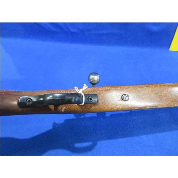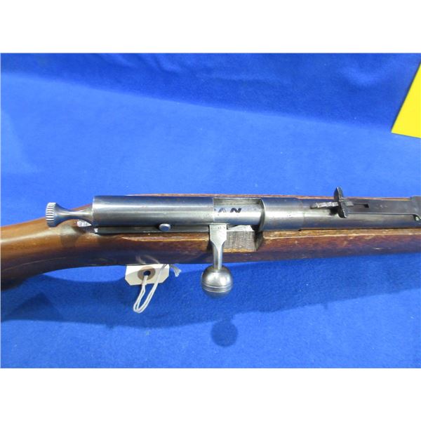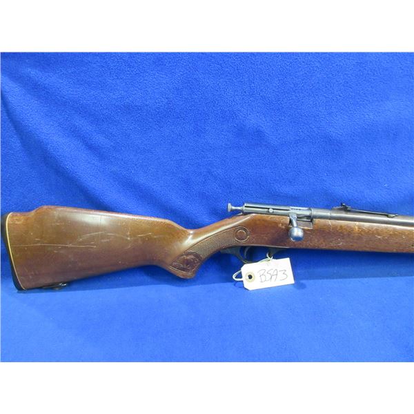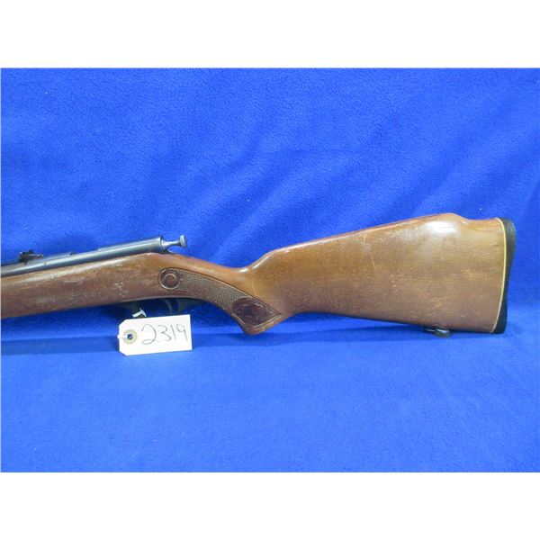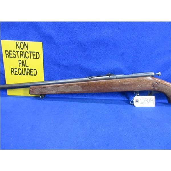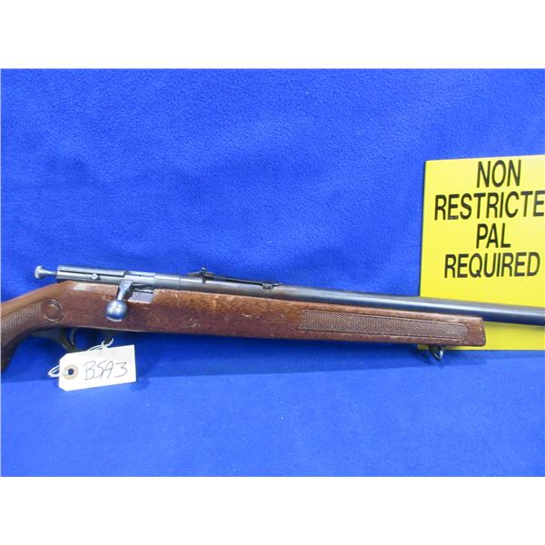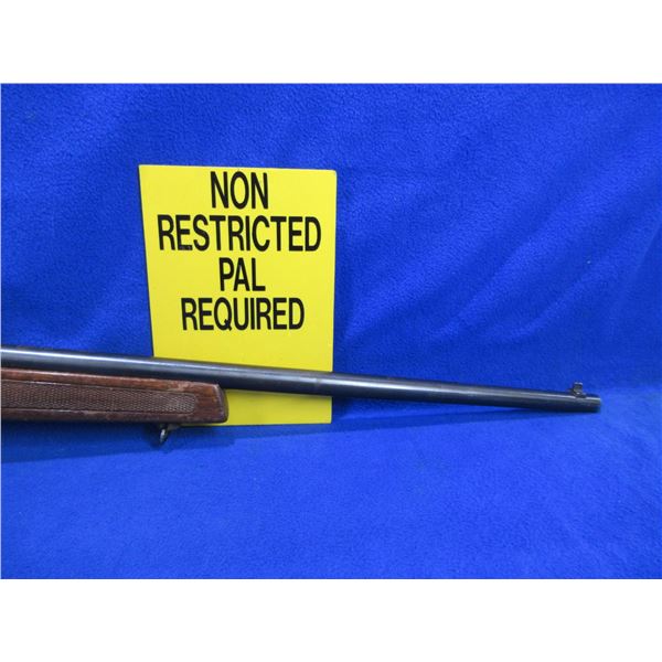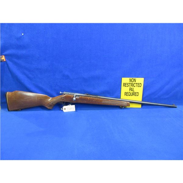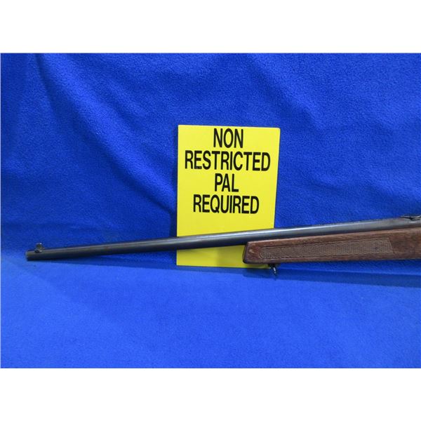 Non-Restricted - Cooey Model 750 in 22 S/L/LR - This single shot bolt action rifle appears to be in good to very good working order. Barrel is 24", rifling is good to very good, bluing is turning brown with some light pitting, has both sights, stock is good with many usage marks, butt plate good, comes with swivels. Ser # NVS-750 etched on bolt