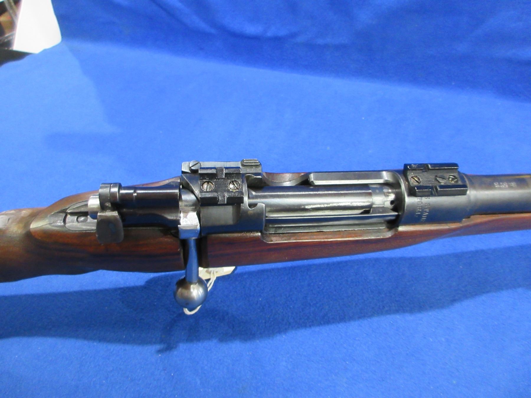 Non-Restricted - Carl Gustaf M96 in 8x57JS - This bolt action rifle with floorplate magazine appears to be in good to very good working order. Barrel is 23 1/2", rifling is good, bluing is good, has both sights and Weaver style bases, stock has a crack on the top of the wrist area and has been modified, metal butt plate good, comes with swivels. Ser #11229
