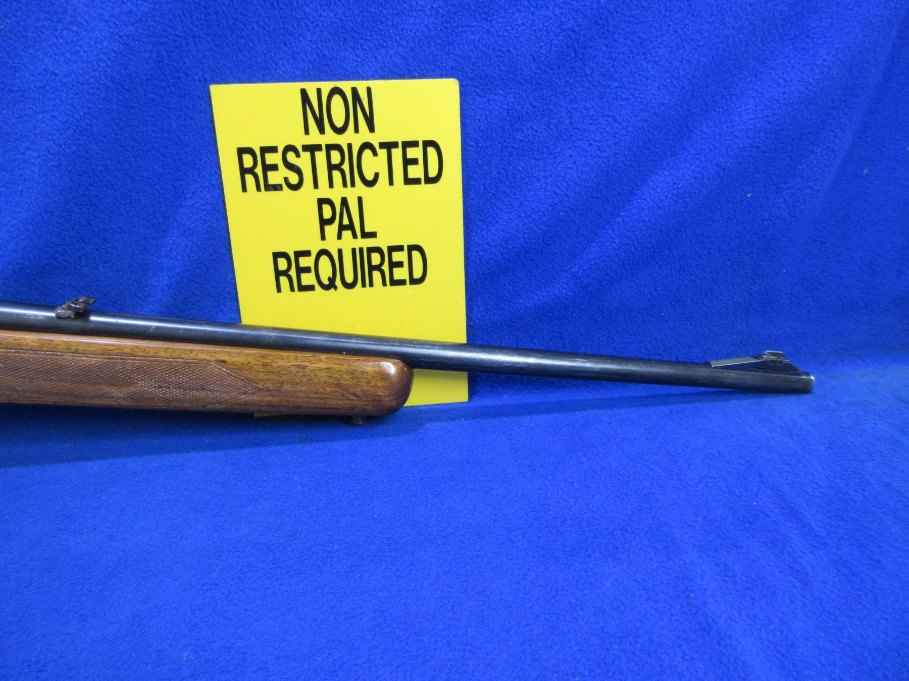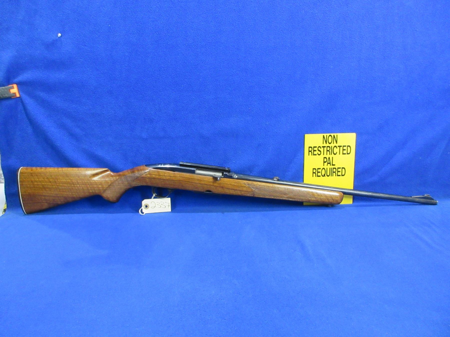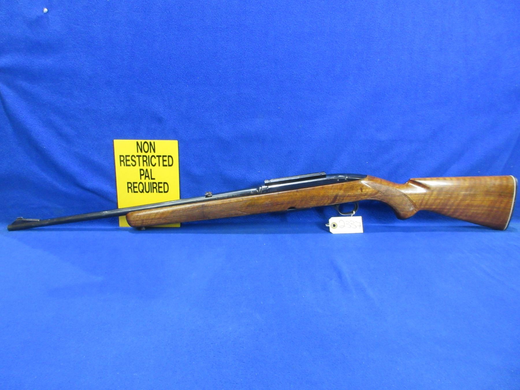 Non-Restricted - Winchester Model 100 in 308 Win- Made in 1961, this semi-auto rifle with removable magazine is in non working order as cocking is intermittent and safety is not working. Barrel is 22", rifling is good to very good, bluing has wear spots, has both sights, stock is good to very good with usage marks and appears refinished , butt plate good, comes with front swivel stud, rear stud missing. Ser # 16059
