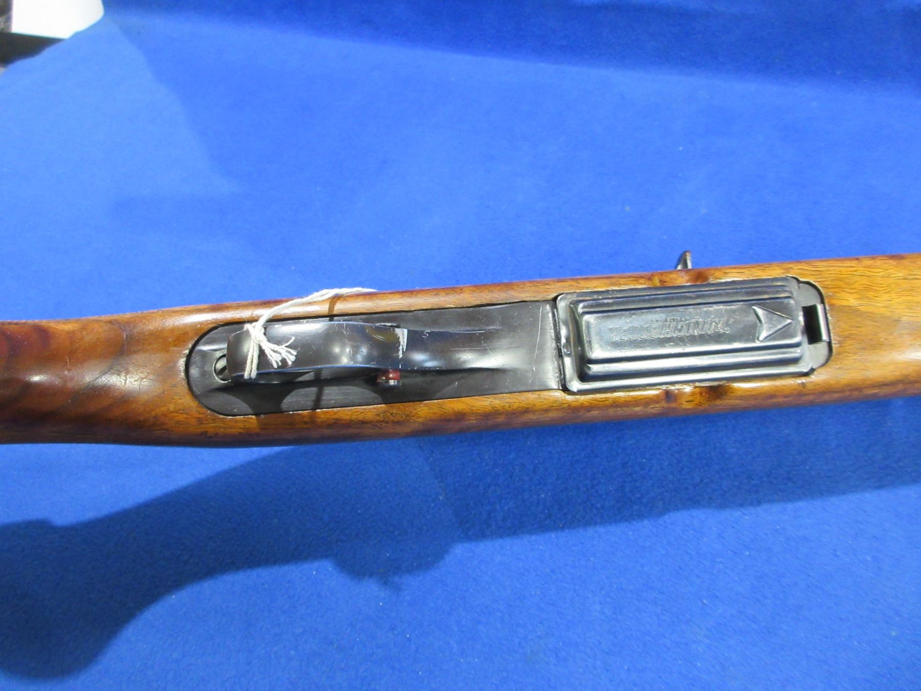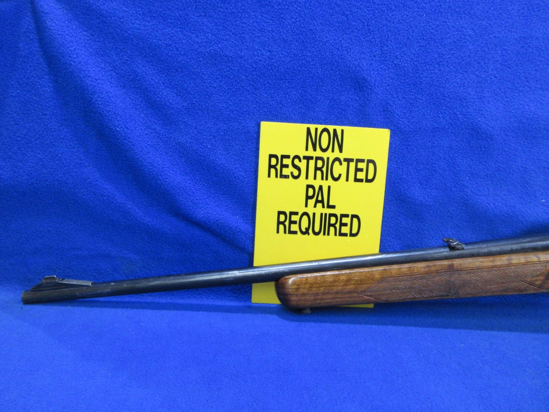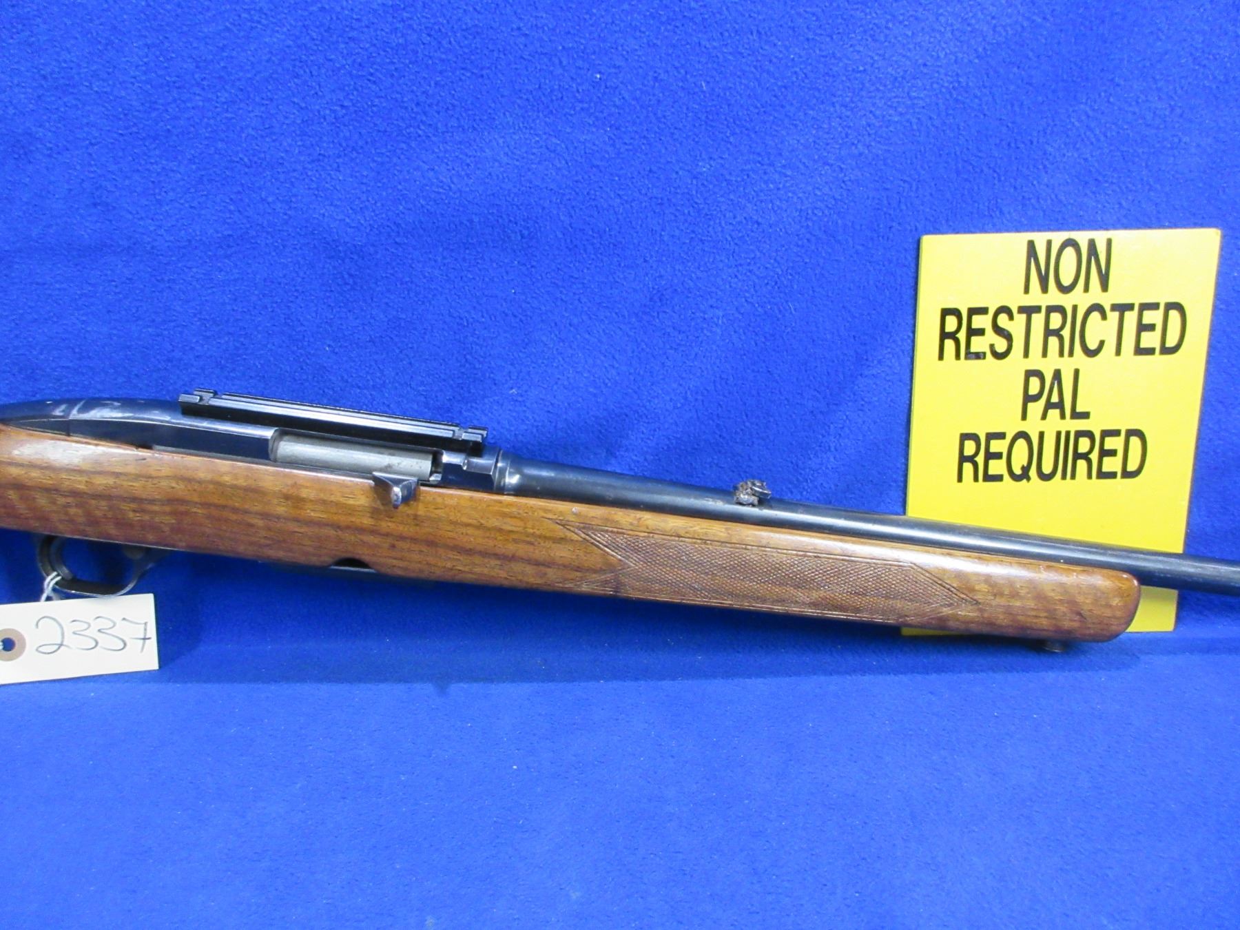 Non-Restricted - Winchester Model 100 in 308 Win- Made in 1961, this semi-auto rifle with removable magazine is in non working order as cocking is intermittent and safety is not working. Barrel is 22", rifling is good to very good, bluing has wear spots, has both sights, stock is good to very good with usage marks and appears refinished , butt plate good, comes with front swivel stud, rear stud missing. Ser # 16059