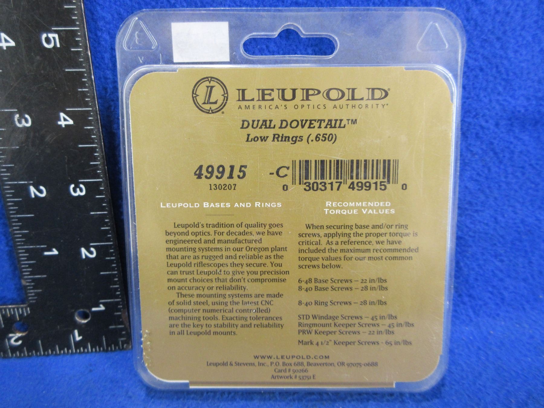 Lot 2338 NEW - Leupold Dual Dovetail 1" Low Rings, Matte # 49915