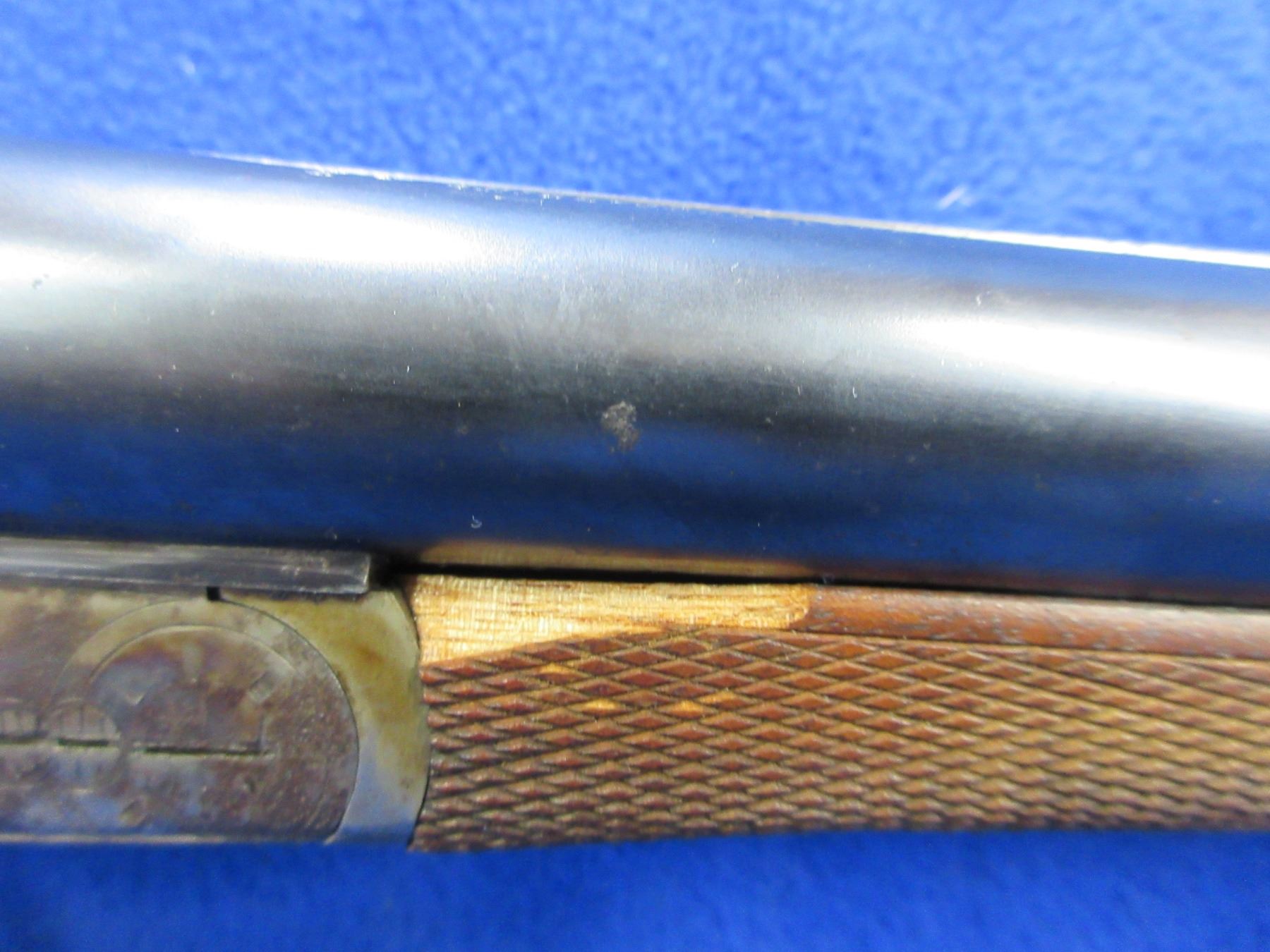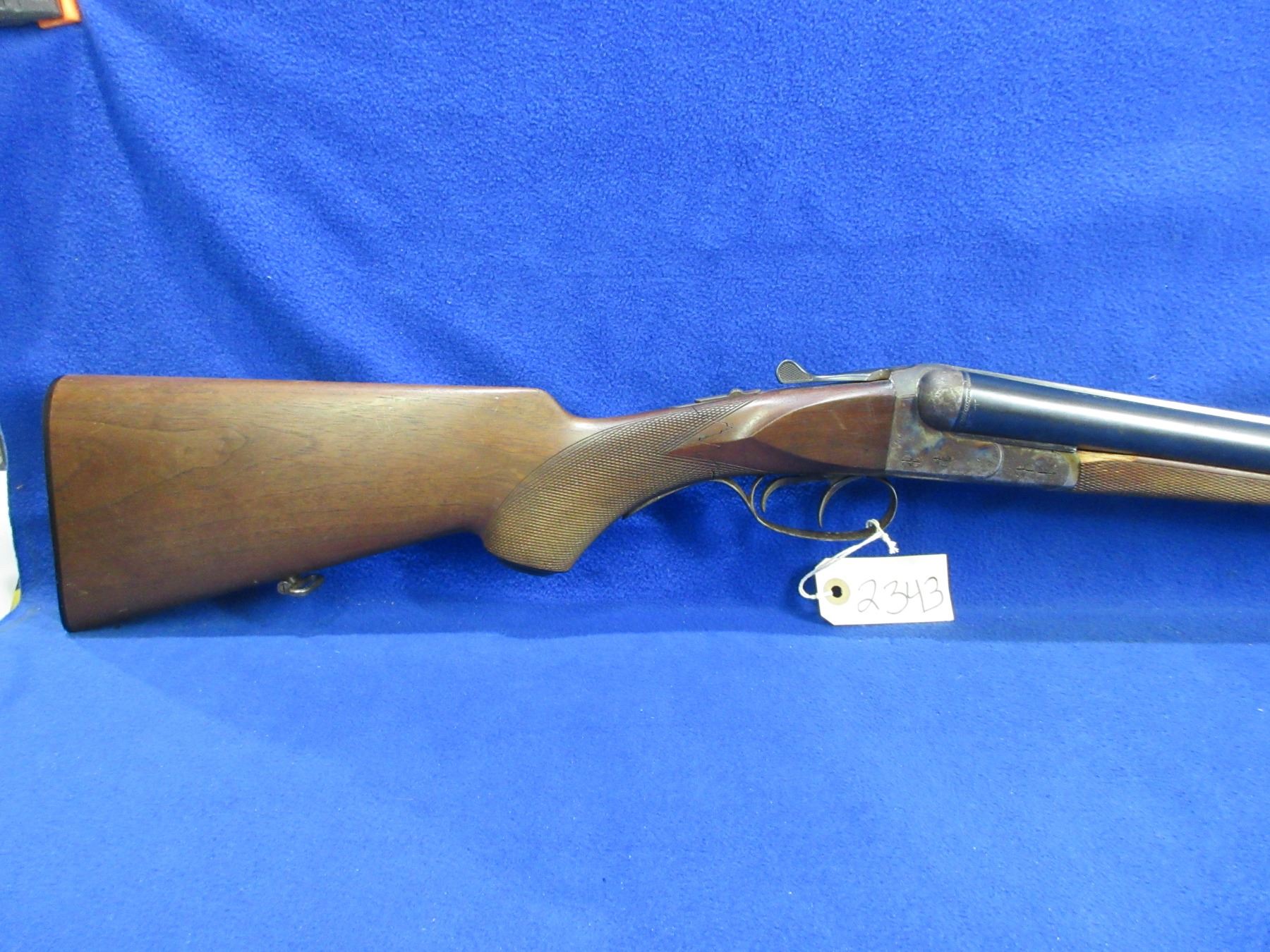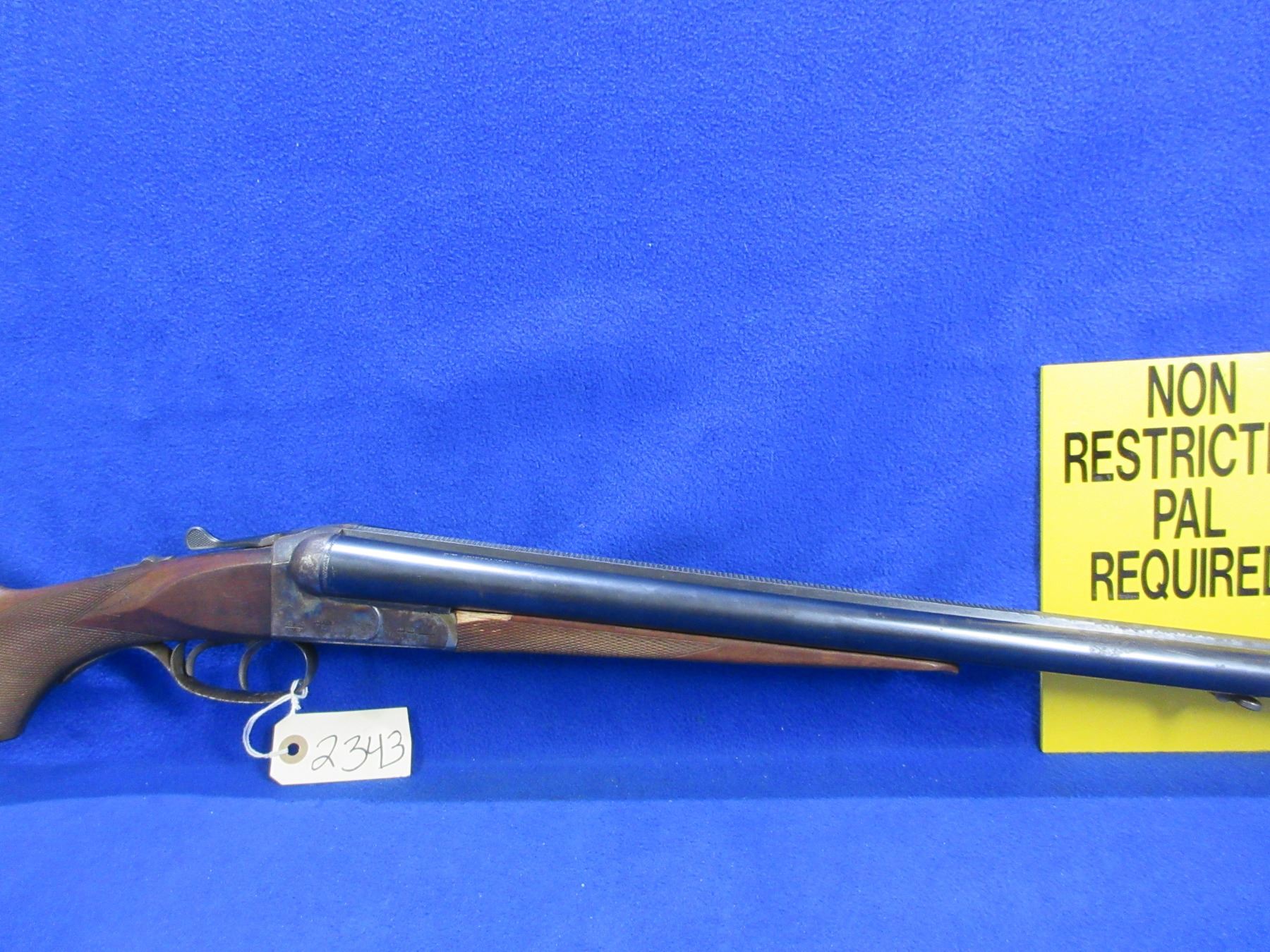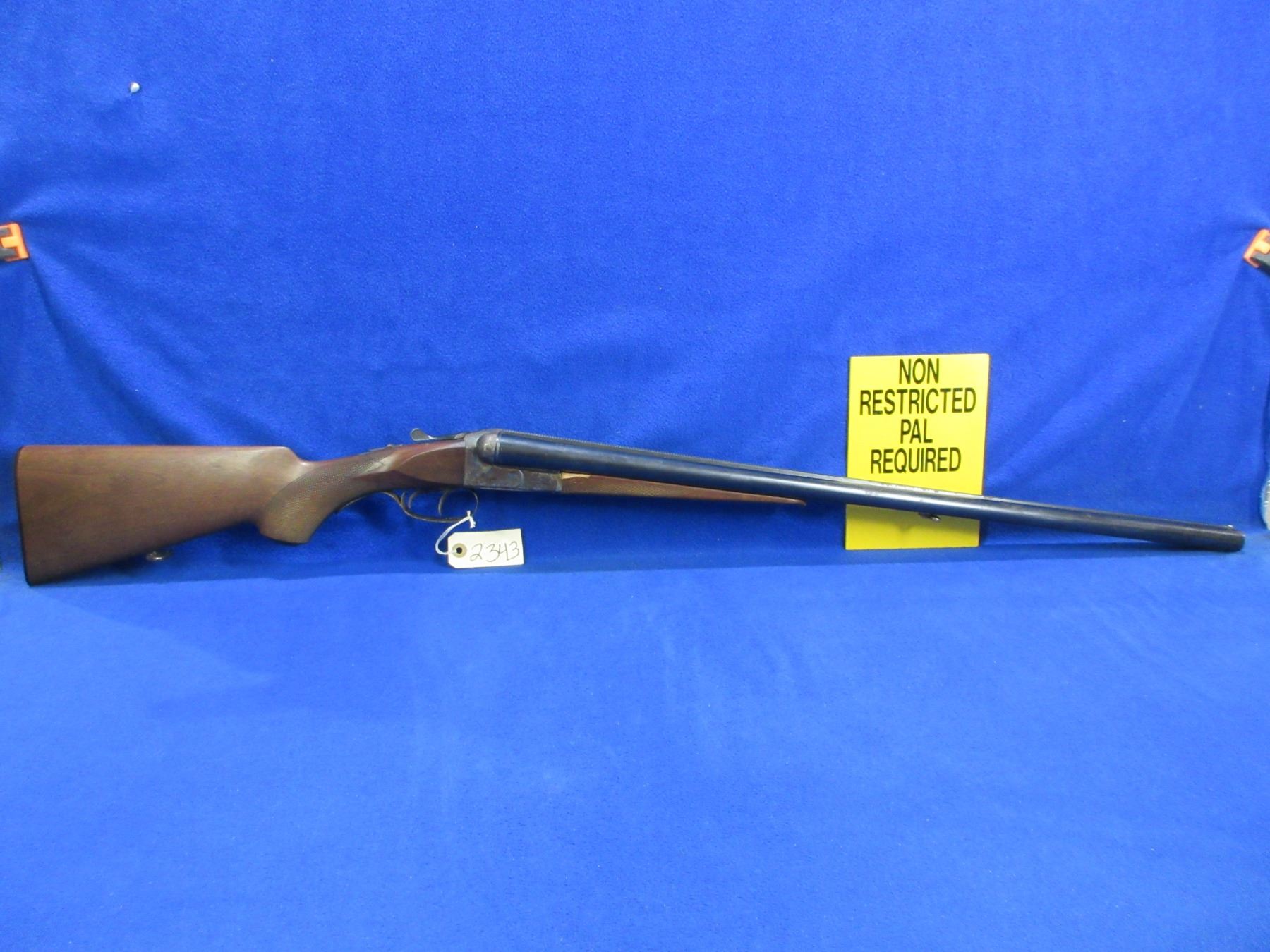 Non-Restricted - Husqvarna Model 1310 in 12 Ga. 2 3/4" - This tip up SXS shotgun appears to be in working order but should not be fired as the stock is broken in the wrist area, action is tight. Barrels are 27 1/2", bores are good to very good, bluing is good with some light pitting, has bead front sight, stock is broken in the wrist area, forearm is good but has a chip at the back on the right side, butt plate good, comes with swivels. Ser # 242324