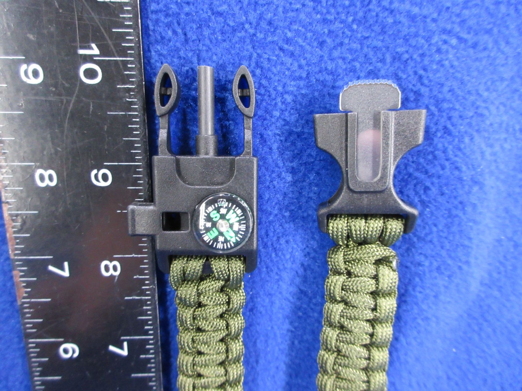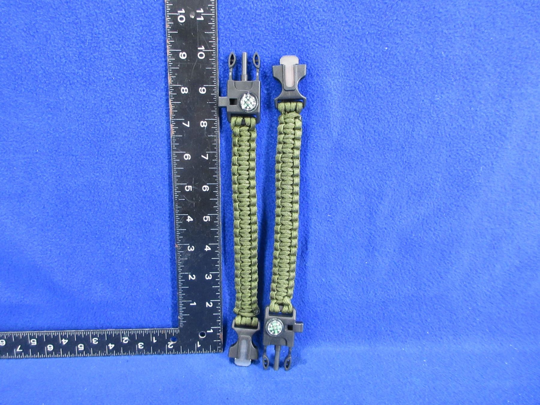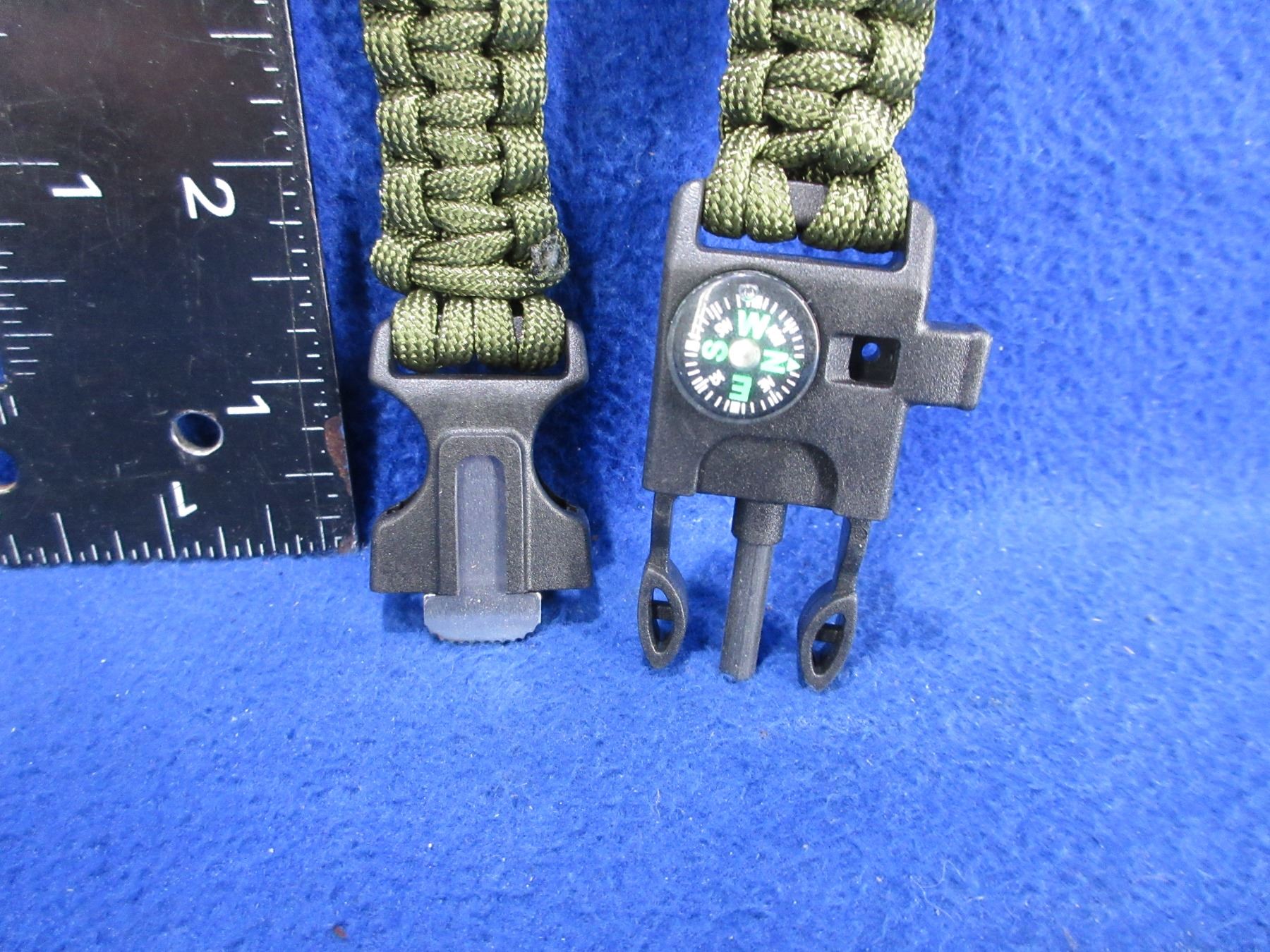 Lot 2364 NEW - 2 Paracord Bracelets with Compass, Whistle & Flint