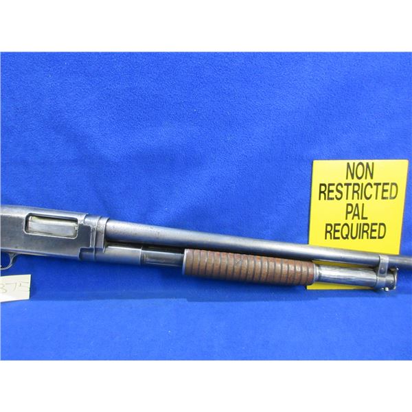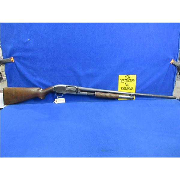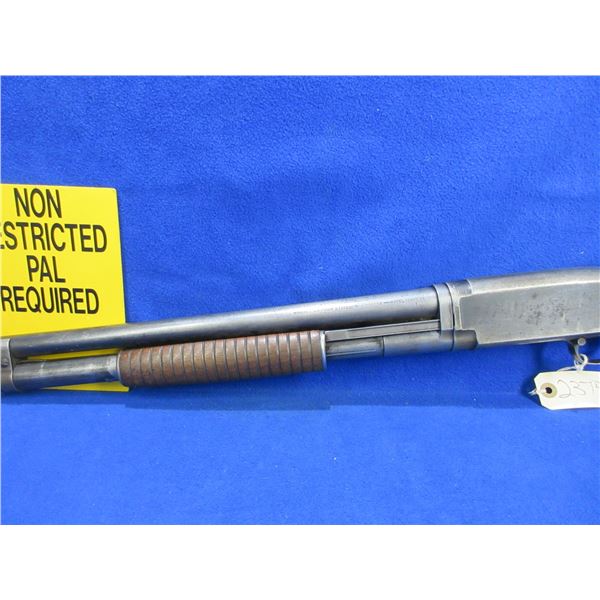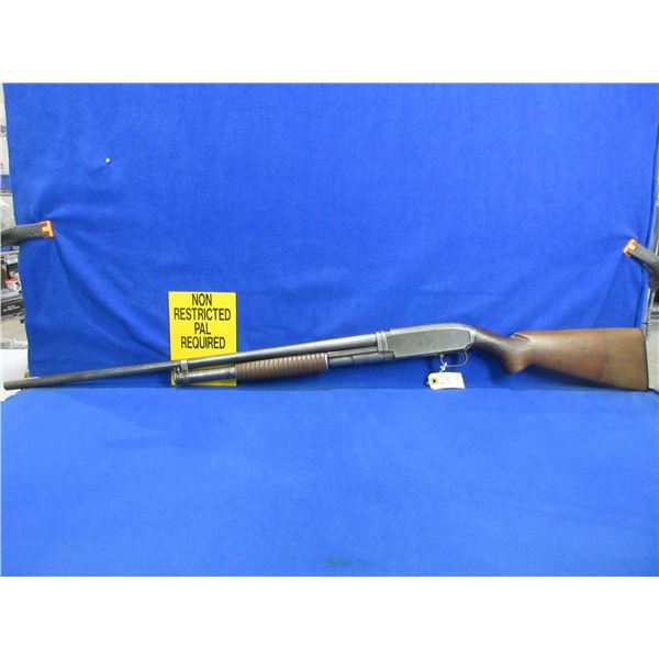 Non-Restricted - Winchester Model 12 in 12 Ga. 2 3/4" - Made in 1941, this pump action shotgun appears to be in good to very good working order. Barrel is 30", bore is good but barrel has a small dent approx 7" from muzzle, bluing is gone, has bead front sight, stock has a hairline crack on both sides of the wrist area, forearm is good with usage marks, butt plated good, swivels are missing. Ser # 835934