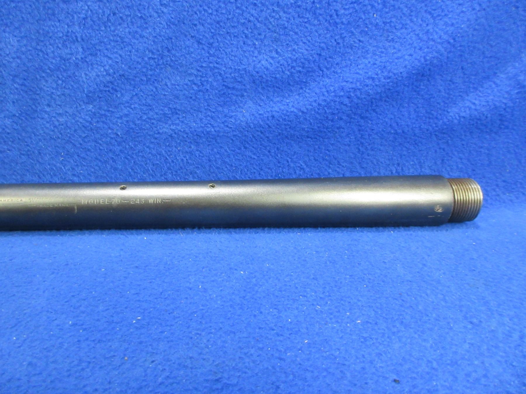 Barrel Only - Winchester Model 70 Varmint in 243 Win. - Heavy barrel is 26", rifling is very good, bluing is good with some very light scratches and some light pitting near the muzzle, has no sights but is drilled and tapped. PAL Required