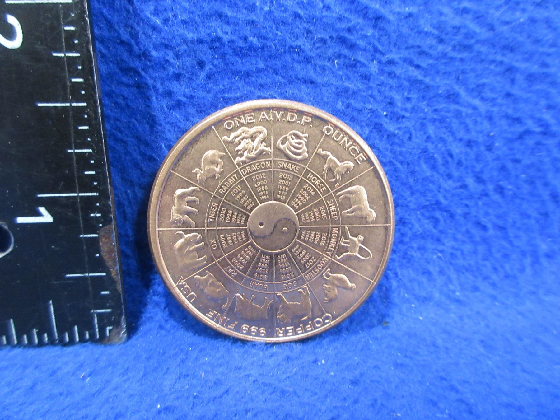 .999 Fine Copper One AVDP Ounce - Leo Coin