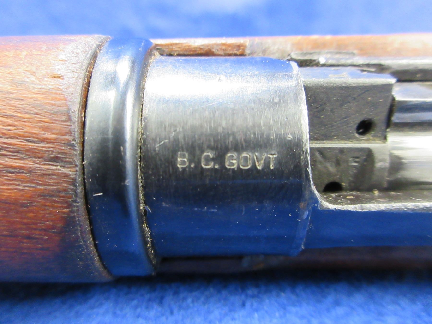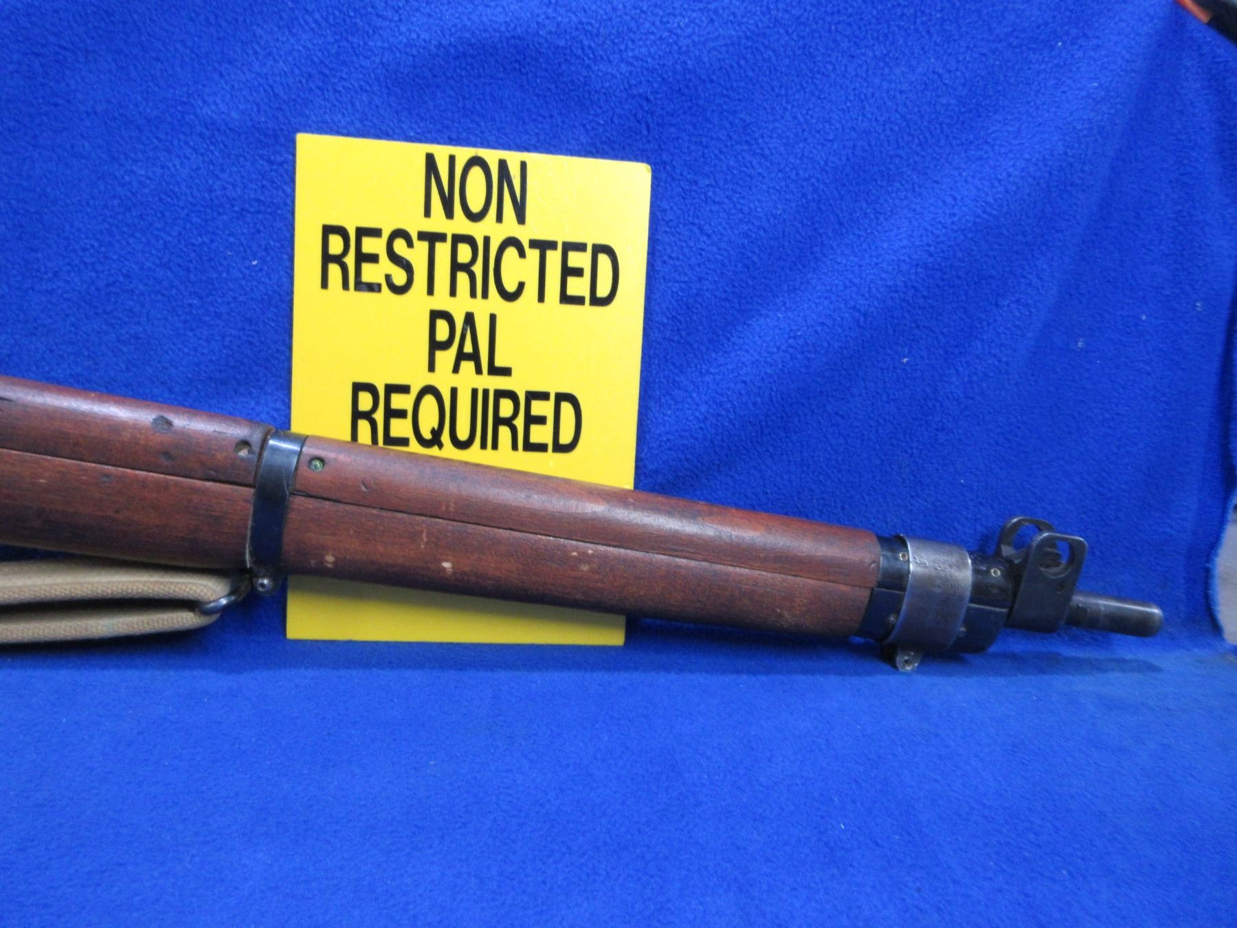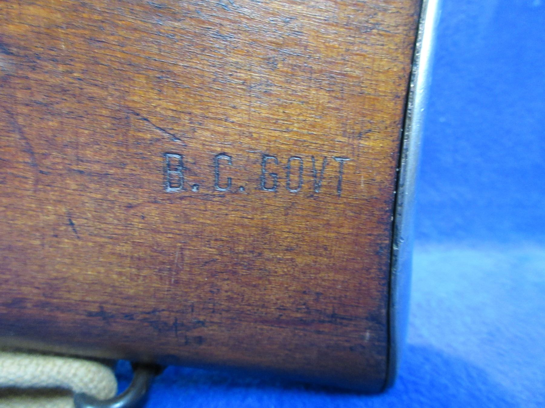Non-Restricted - Lee Enfield No. 4 Mark I in 303 British - This rifle is in nice condition. Marked " B.C. Govt". This bolt action rifle with removable magazine appears to be in good to very good working order. Barrel is 25", rifling is good to very good, bluing is good for age, has both sights, full wood stock is good with usage marks and marked "B.C. Govt" at the butt, brass butt plate good, comes with swivels and web sling. Ser #S27286