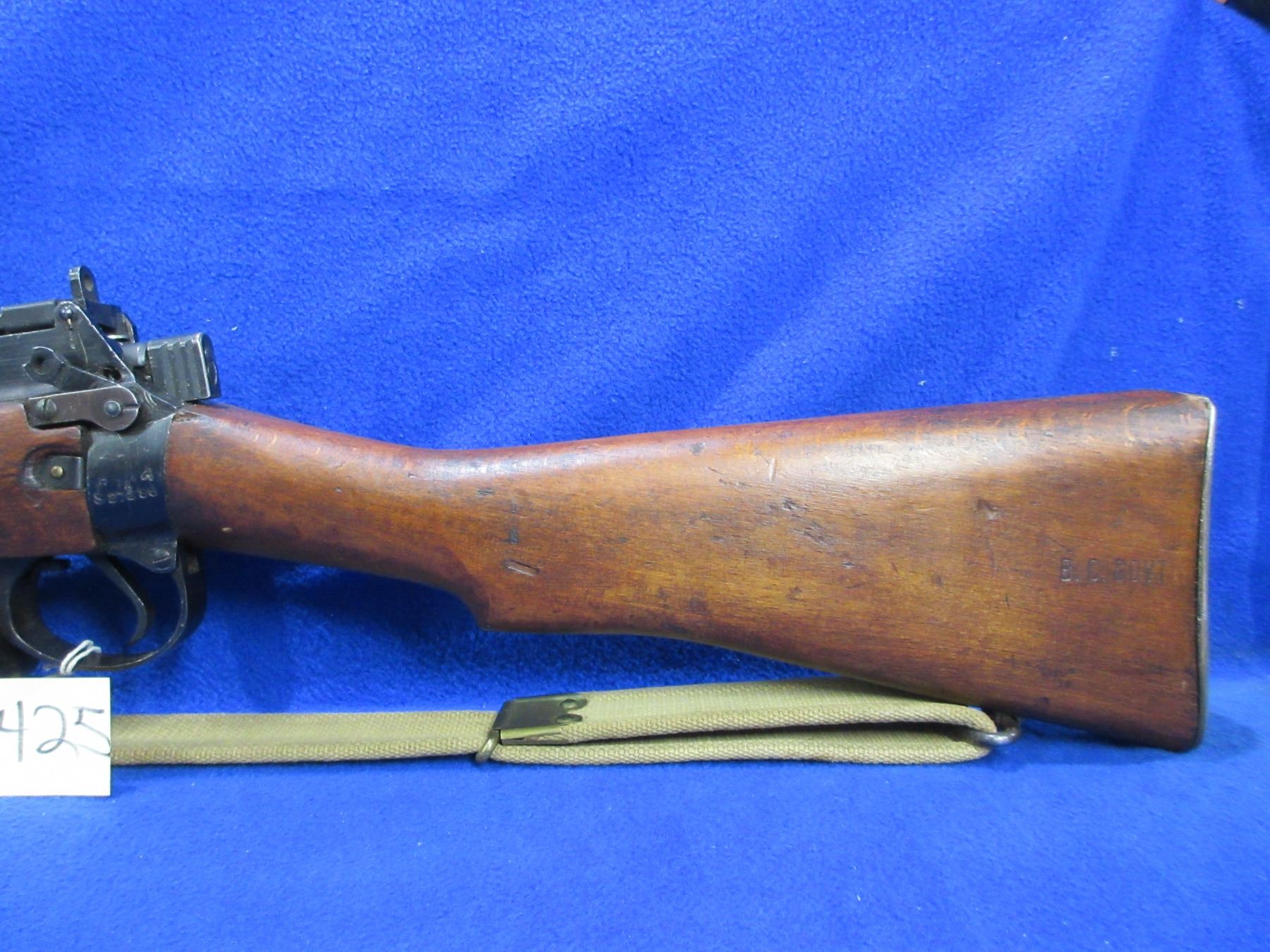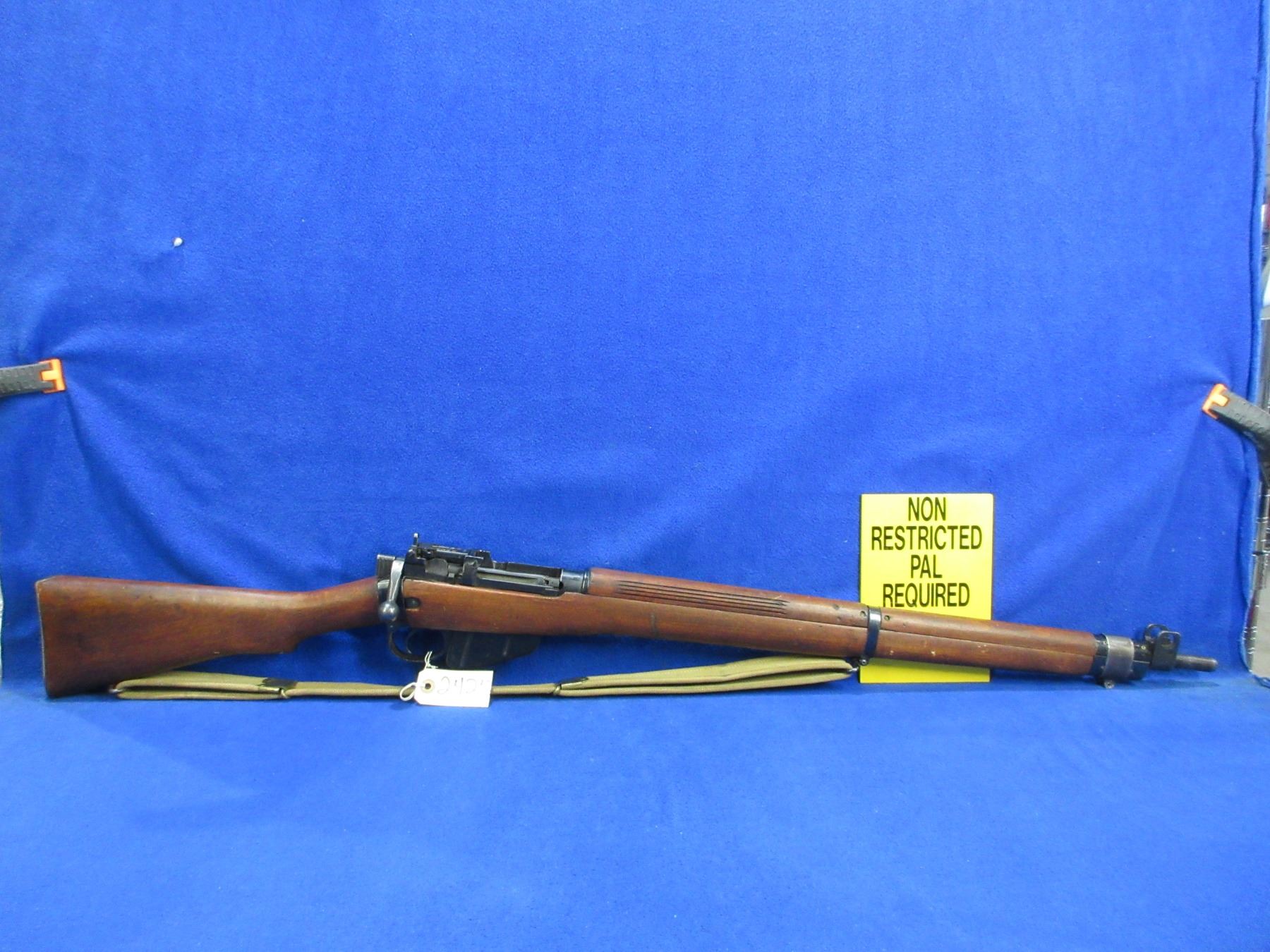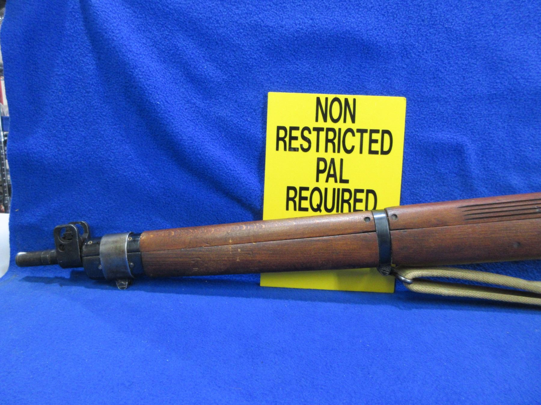 Non-Restricted - Lee Enfield No. 4 Mark I in 303 British - This rifle is in nice condition. Marked " B.C. Govt". This bolt action rifle with removable magazine appears to be in good to very good working order. Barrel is 25", rifling is good to very good, bluing is good for age, has both sights, full wood stock is good with usage marks and marked "B.C. Govt" at the butt, brass butt plate good, comes with swivels and web sling. Ser #S27286