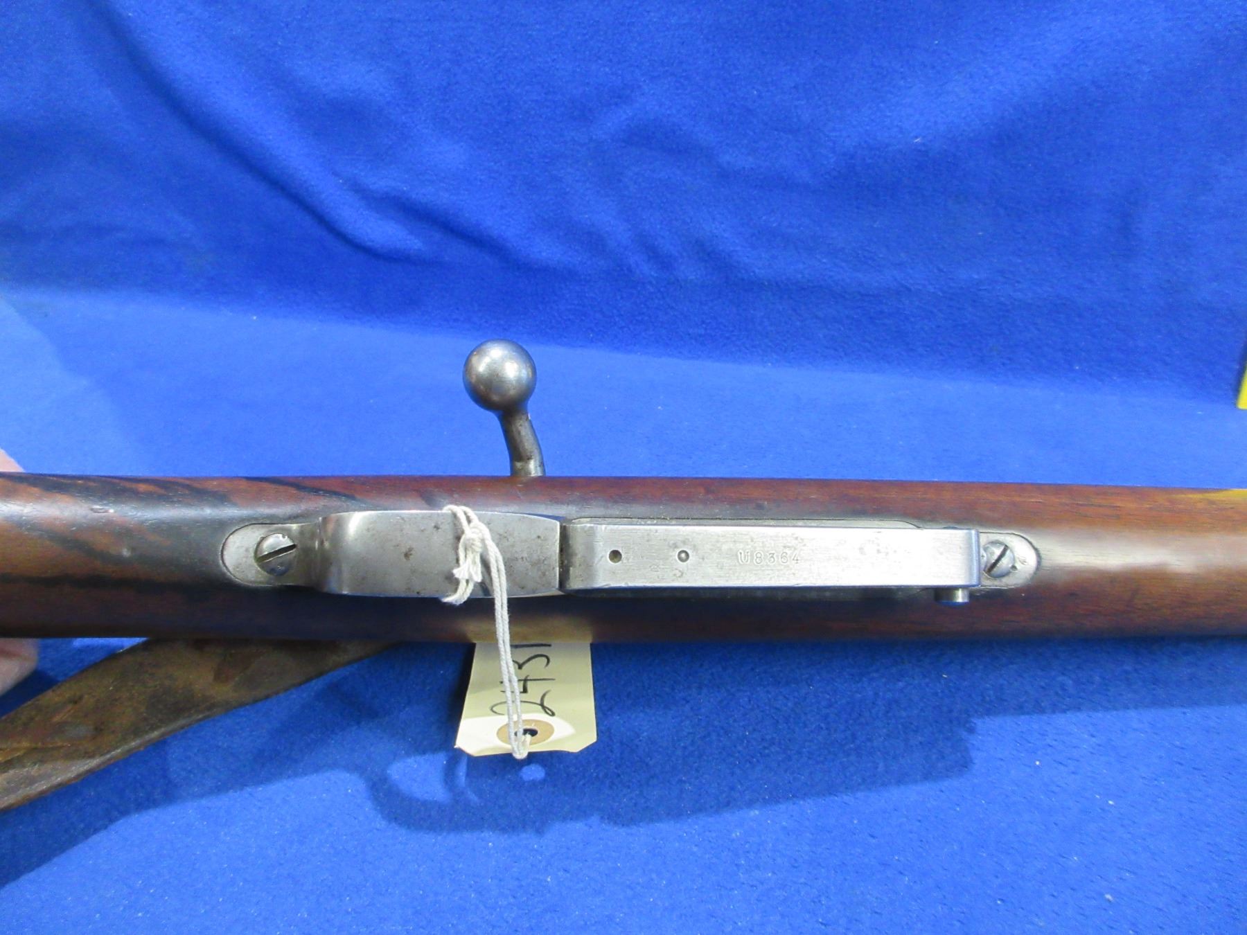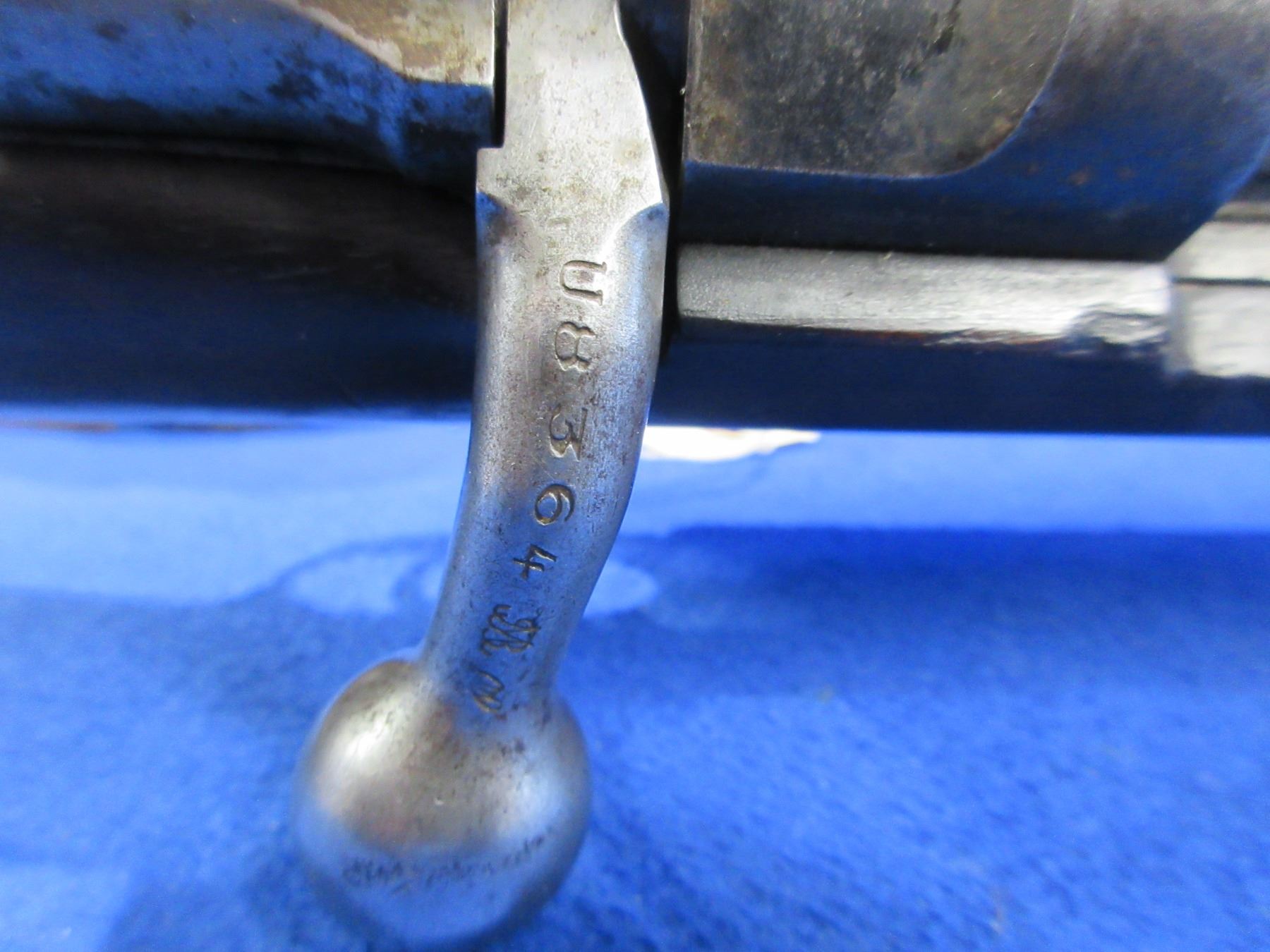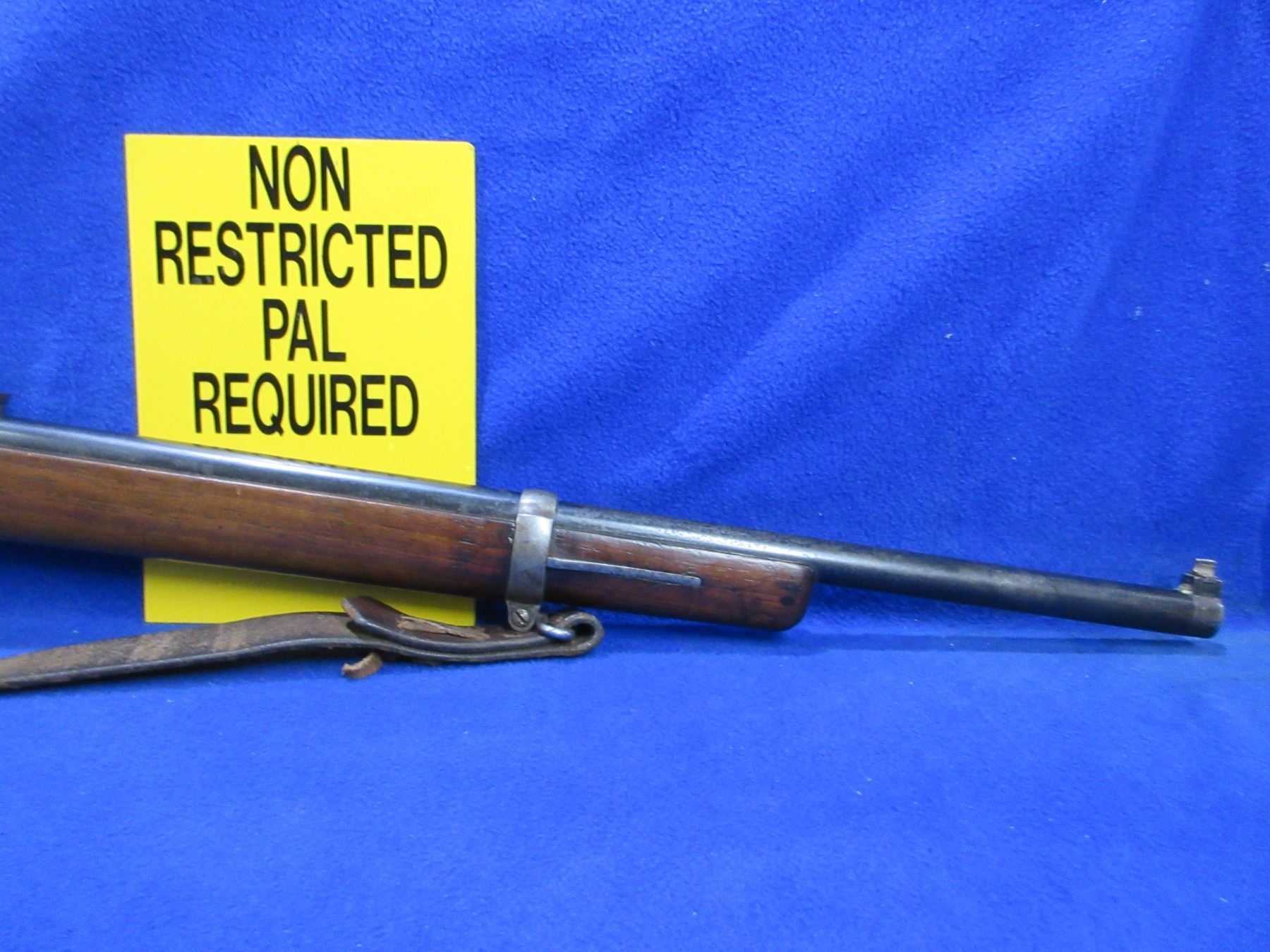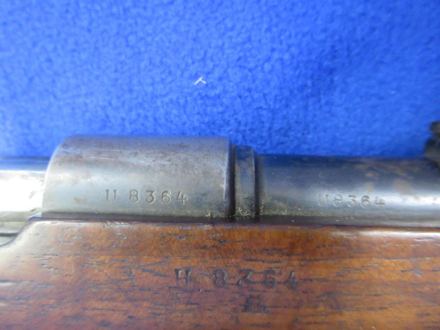 Non-Restricted - Argentine Mauser 1891 in 7.65x53 - Interesting grain on this one. Made in Berlin, this bolt action rifle with internal magazine appears to be in good to very good working order. Barrel is 24", rifling is good to very good, bluing is turning grey with light pitting, has both sights (front sight has a repair), stock is good with usage marks, metal butt plate good, comes with swivels and sling, appears all numbers matching. Ser #U8364
