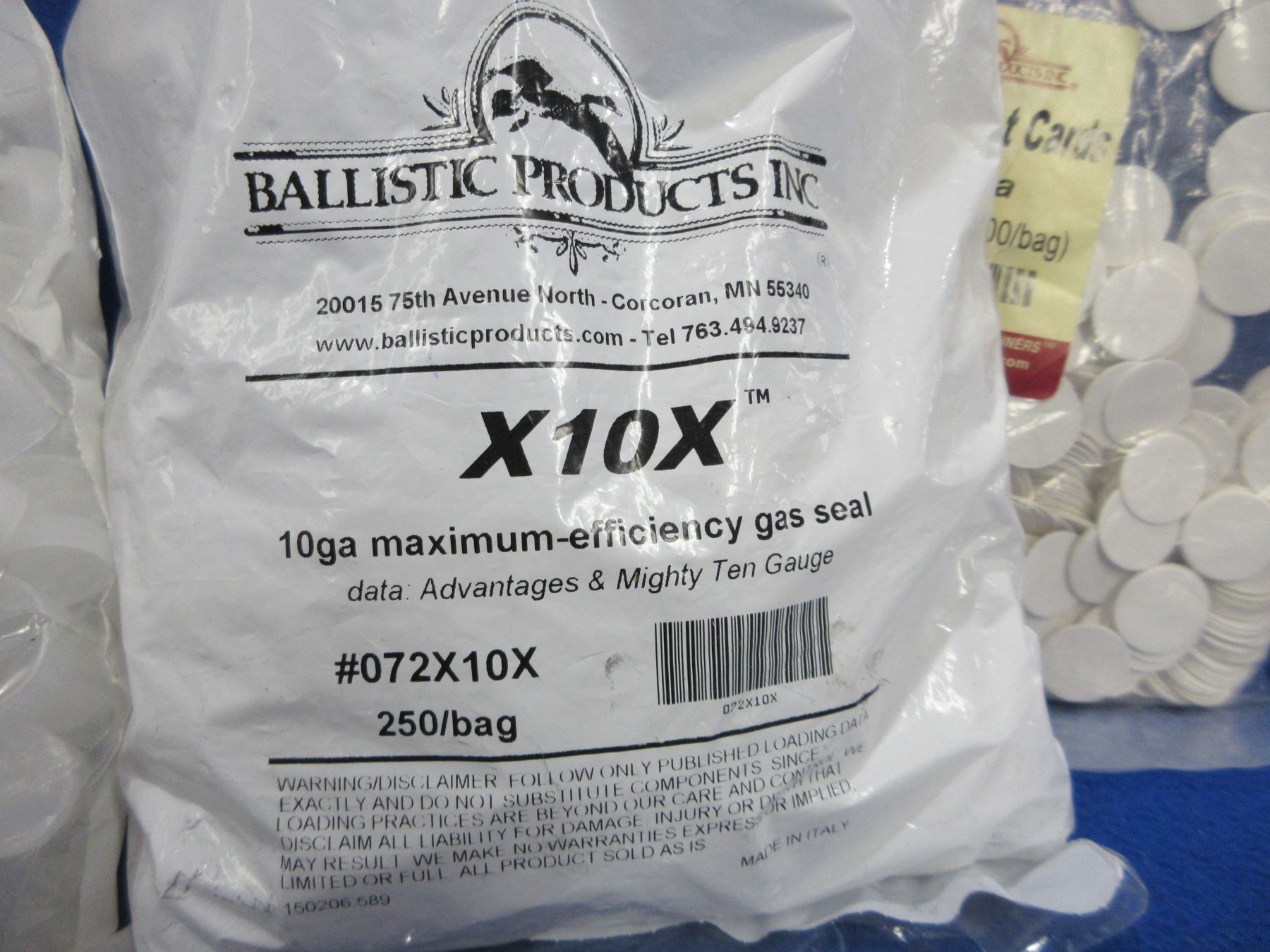 10 Ga. Shotshell Wads (Bag of 250), Gas Seals (Bag of 250), Overshot Cards (Bag of 500) and Protective Shot Sleaves