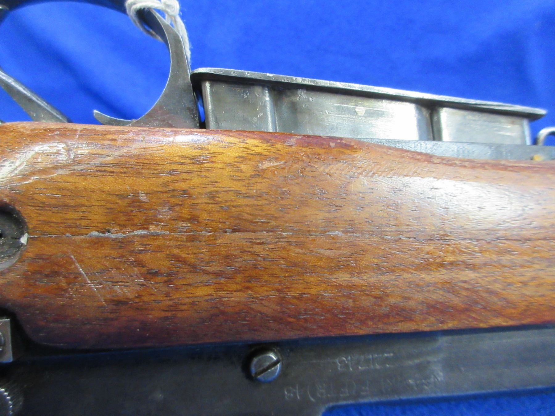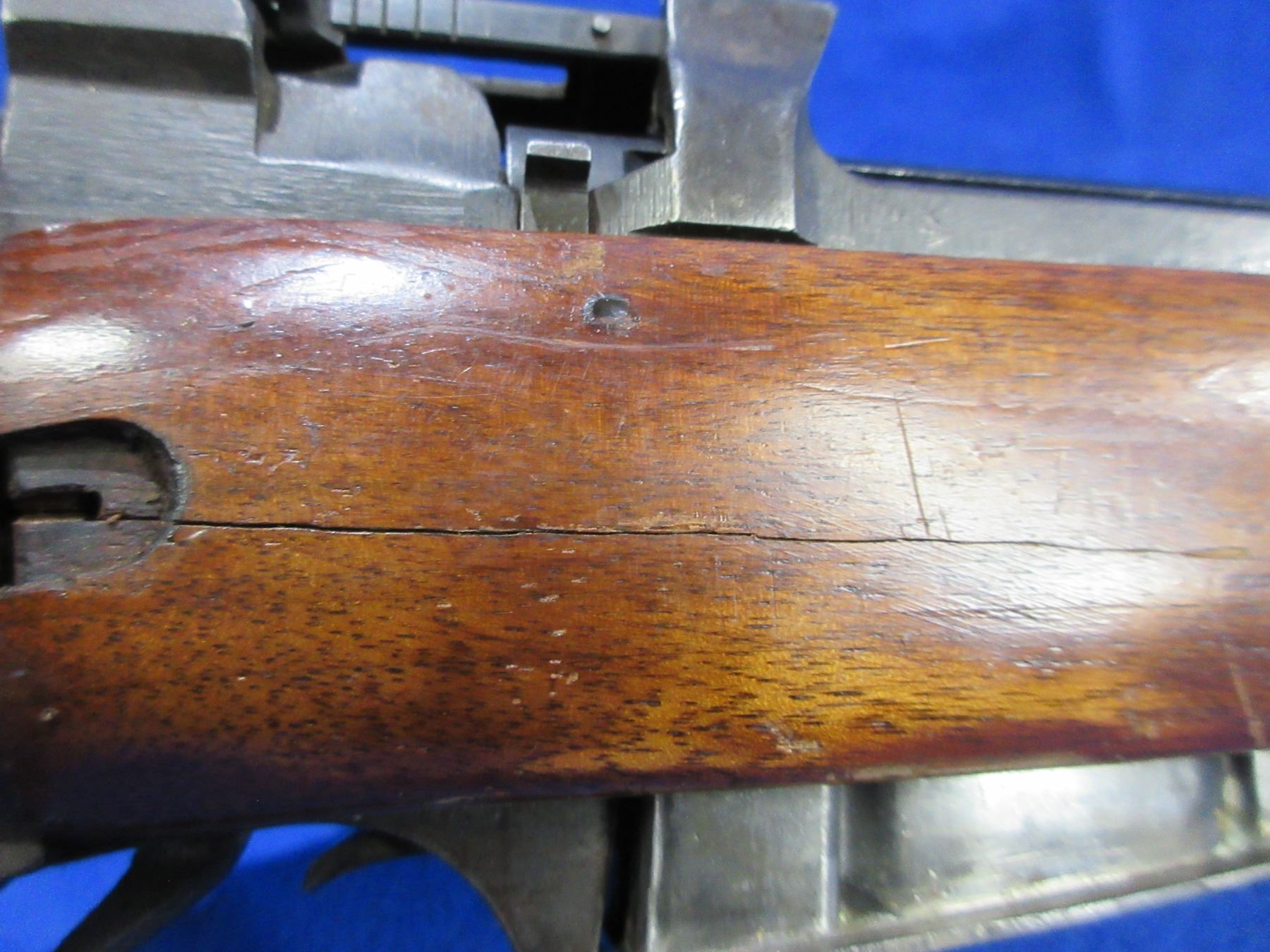 Non-Restricted - Lee Enfield No. 4 Mark I in 303 British - This bolt action rifle with removable magazine appears to be in good to very good working order. Barrel is 25", rifling is good to very good, bluing is goodfor age, has rear sight, front sight missing, stock is good with usage marks, forearm has a crack on both sides of the action, brass butt plate good, swivels are missing. Ser #Z21743