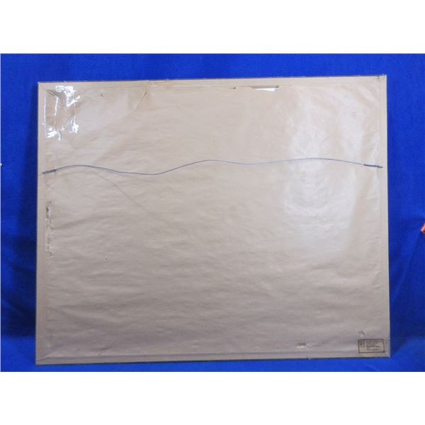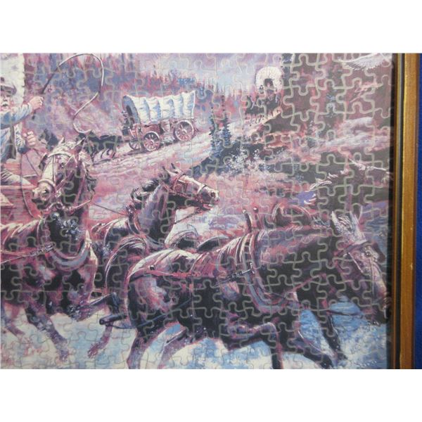 Framed Covered Wagon Puzzle Style Print - Not a Puzzle - 30 3/4" x 24 3/4" - Backing paper is damaged - PICK UP ONLY
