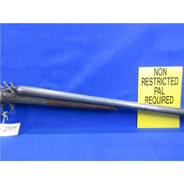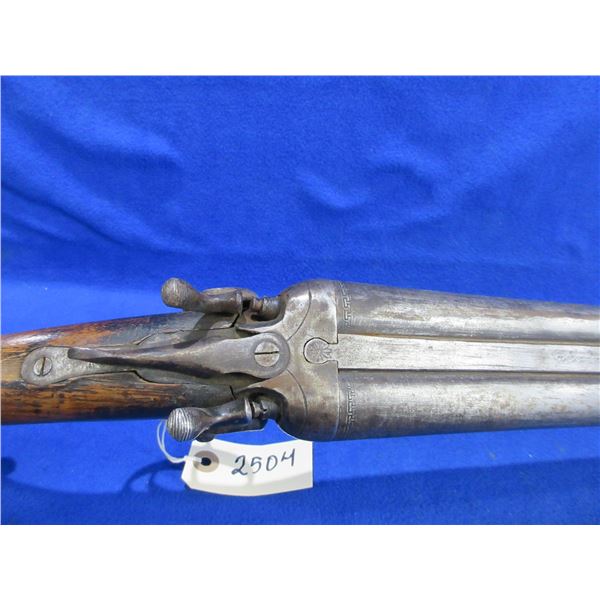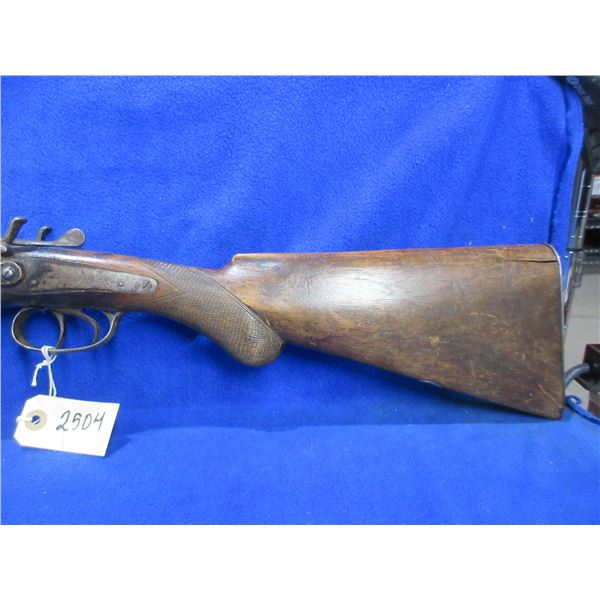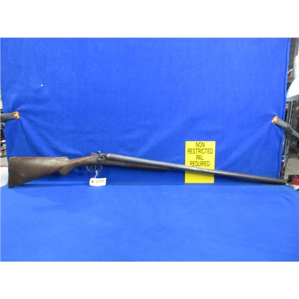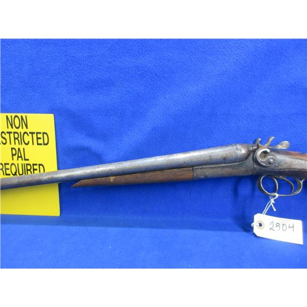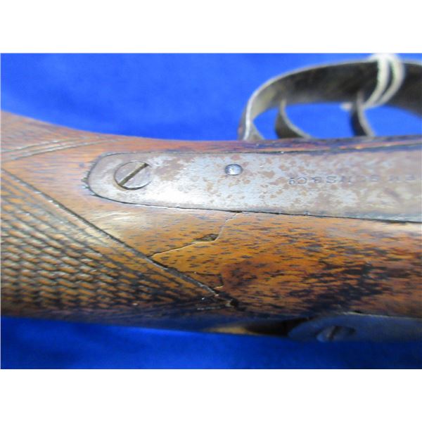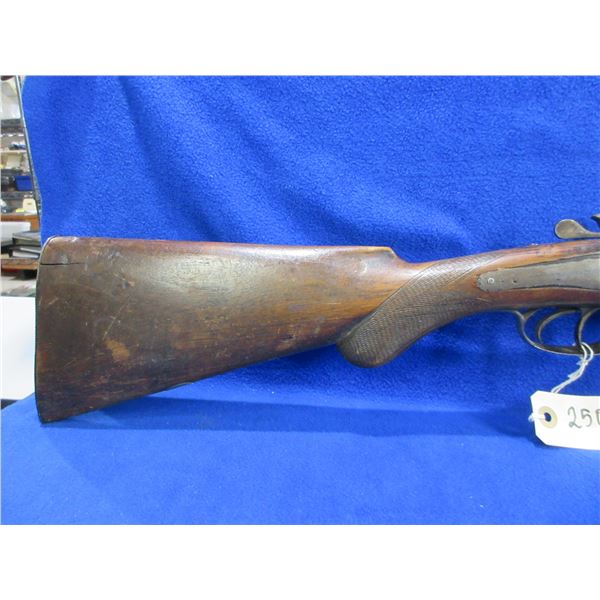 NNon-Restricted - Janssen Son & Co in 12 Ga. 2 3/4" - This tip up SXS shotgun appears to be in working order, action is tight. Damacus barrels are 30 1/4", bores are good, bluing is mostly gone, has bead front sight, stock is poor as it has a crack in wrist area and a crack in the heel, forearm is good, metal butt plate. Ser # 22930