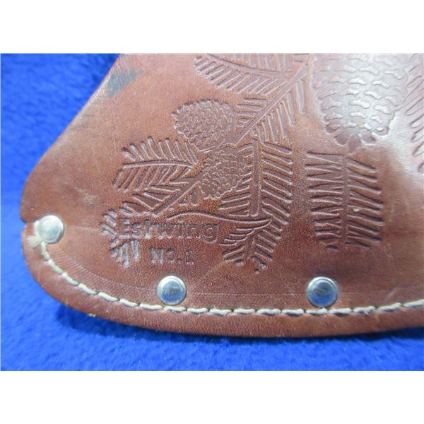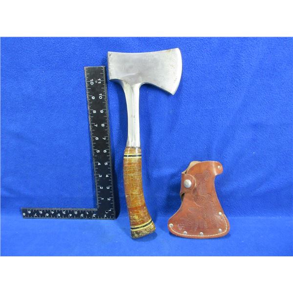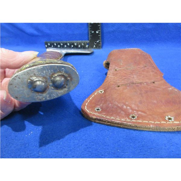 Vintage Estwing Hatchet with Tooled No. 1 Leather Sheath - 3" Blade - Handle finish is cracking