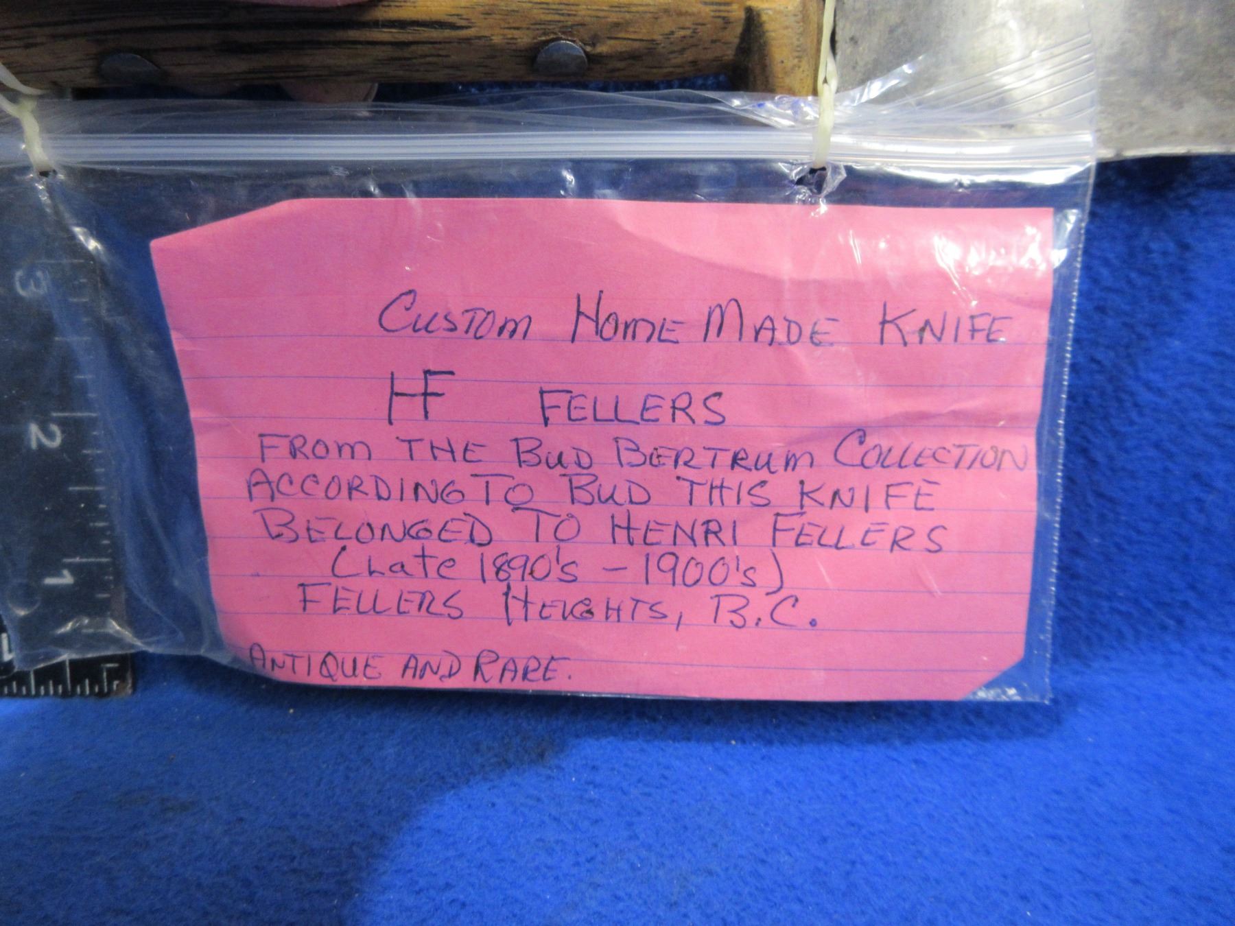 Custom Hand Made Knife - H. Fellers, 6 1/2" Blade - Bud Bertrum Collection