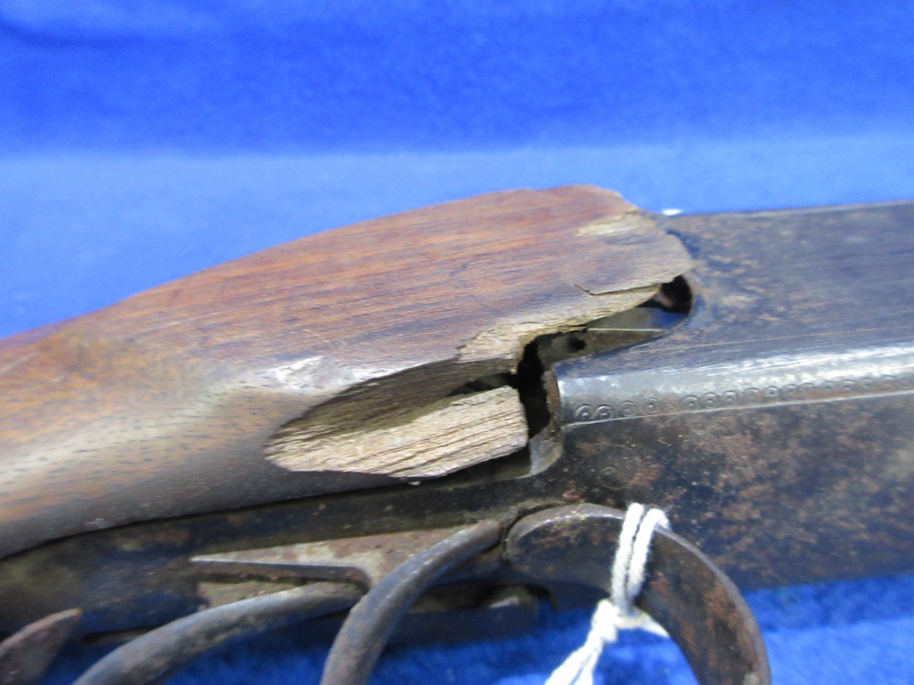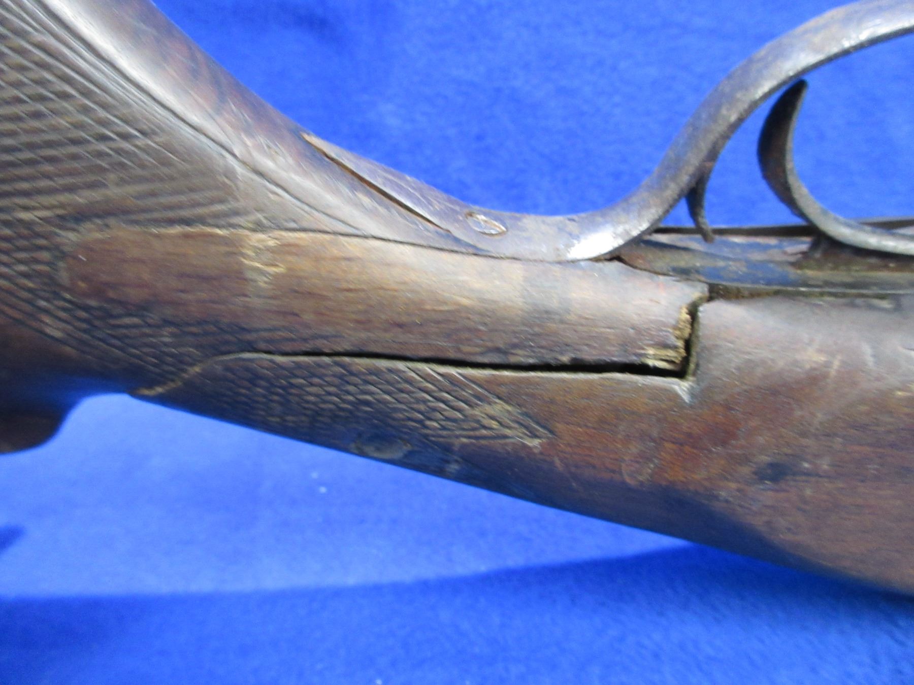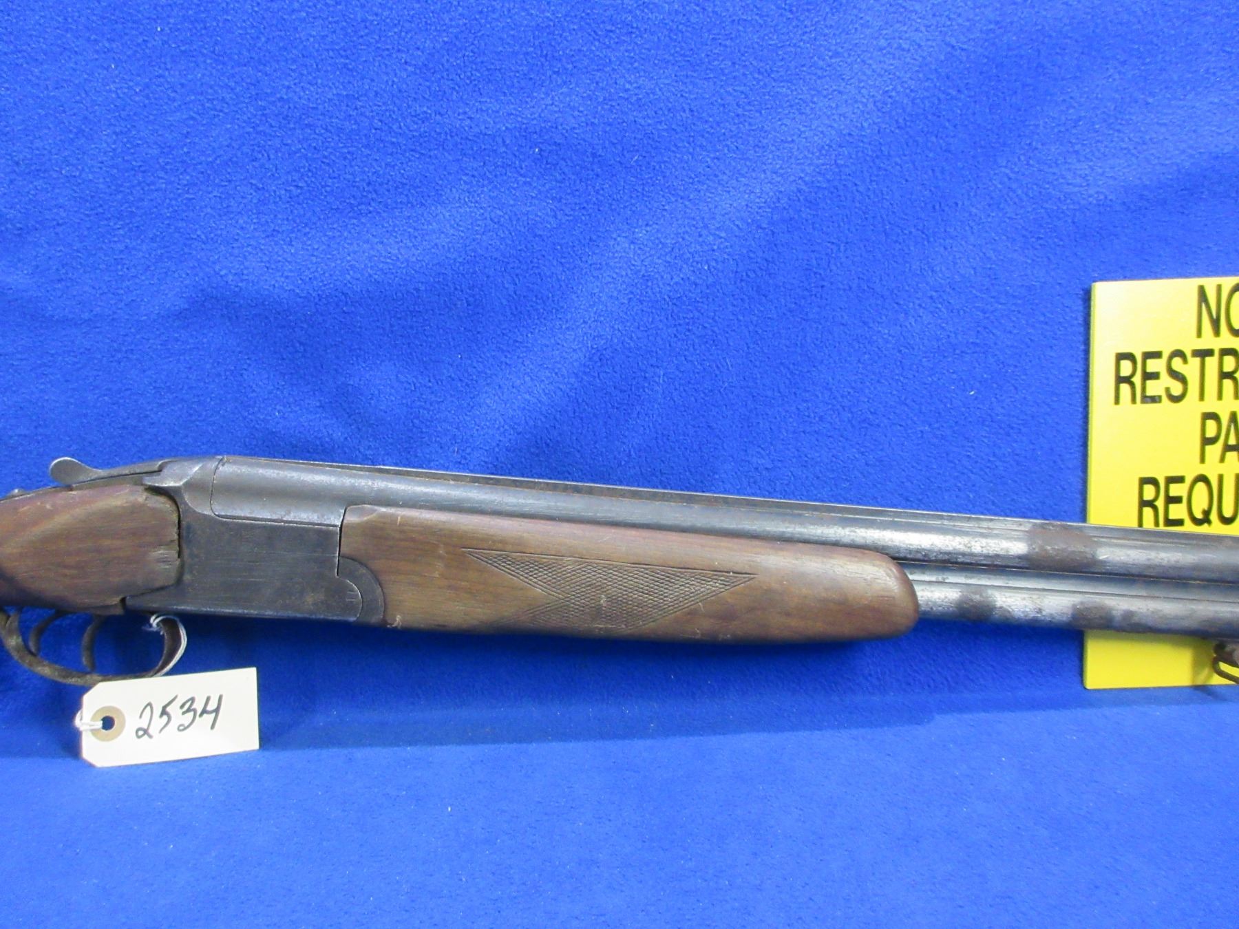 Non-Restricted - Baikal IJ-12 in 12 Ga. 2 3/4" - This over/under shotgun appears to be in poor working order. Barrels are 28 3/4", bores are good, bluing is gone, has bead front sight, stock is broken and looks beyond repair, forearm is fair to good, butt plate good. Ser # K14272