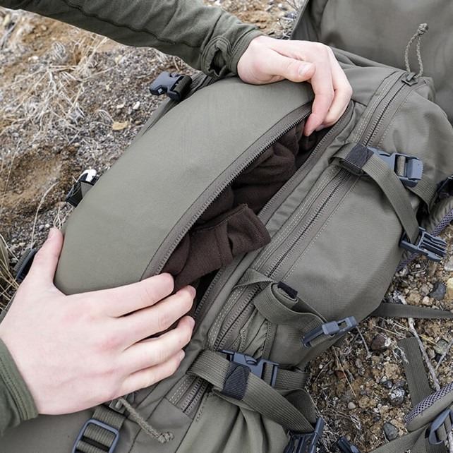Every K4 Pack features full-length, zippered side pockets on both sides of the bag. The pocket is pleated, offering spacious storage for full-size spotting scopes, even when the main bag is full.