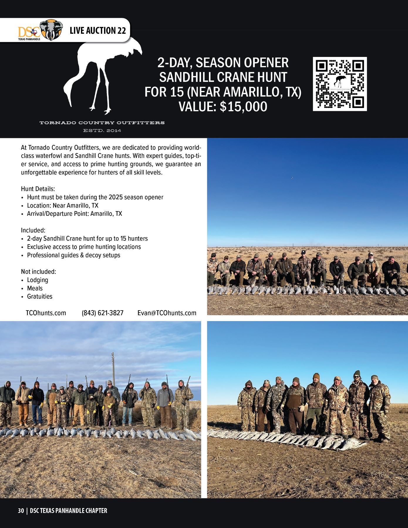 Lot 22 OPENING WEEKEND SANDHILL CRANE HUNT FOR 15 W/ TORNADO COUNTRY OUTFITTERS (AMARILLO, TX)