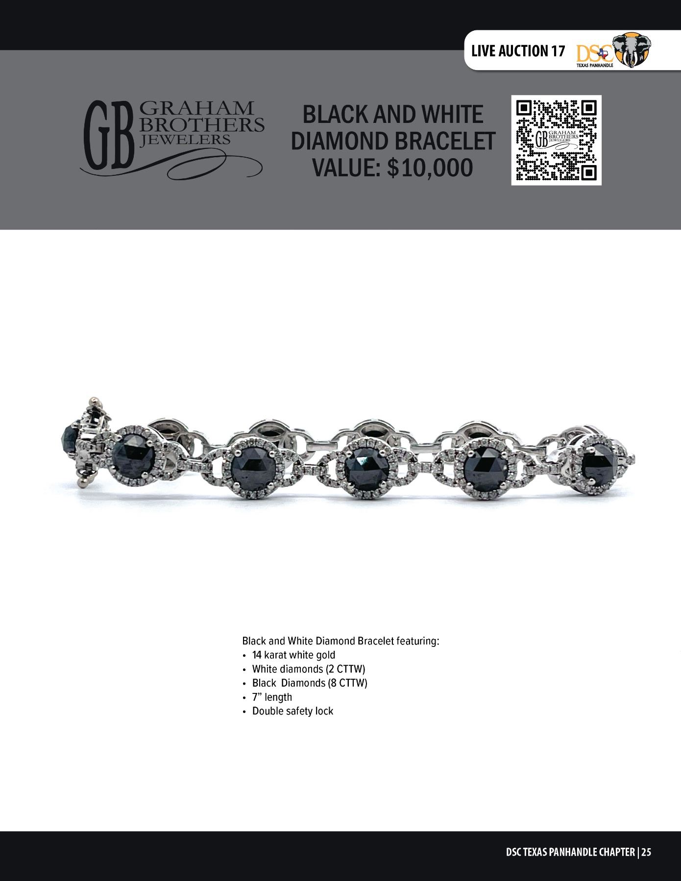 Lot 17 BLACK AND WHITE DIAMOND BRACELET BY GRAHAM BROTHERS JEWELERS