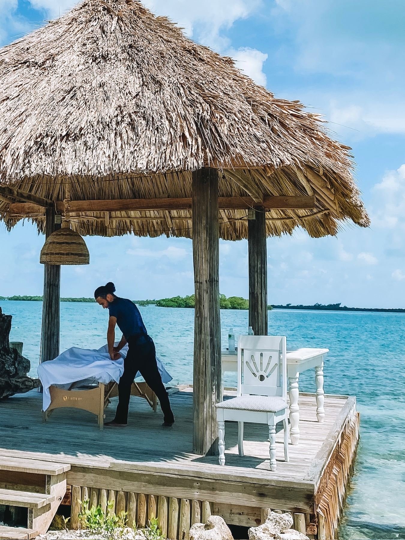 Escape to a 3-acre private island, just a 20-minute boat ride from Dangriga, Belize. Stay in a luxurious beachfront cabana, complete with: