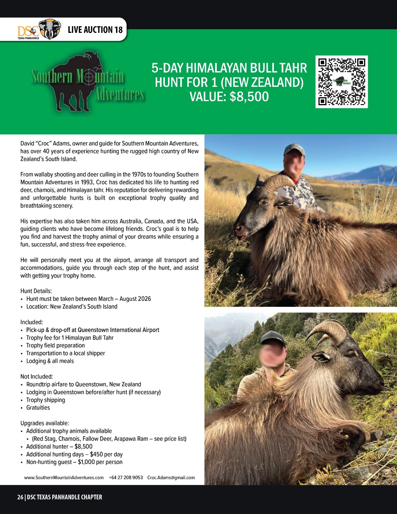 Lot 18 BULL TAHR HUNT W/ SOUTHERN MOUNTAIN ADVENTURES (NEW ZEALAND)
