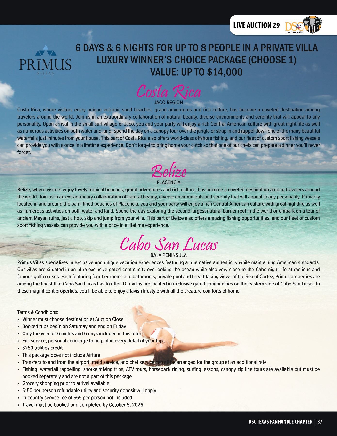 CHOOSE FROM COSTA RICA OR BELIZE OR CABO SAN LUCAS AT AUCTION CLOSE