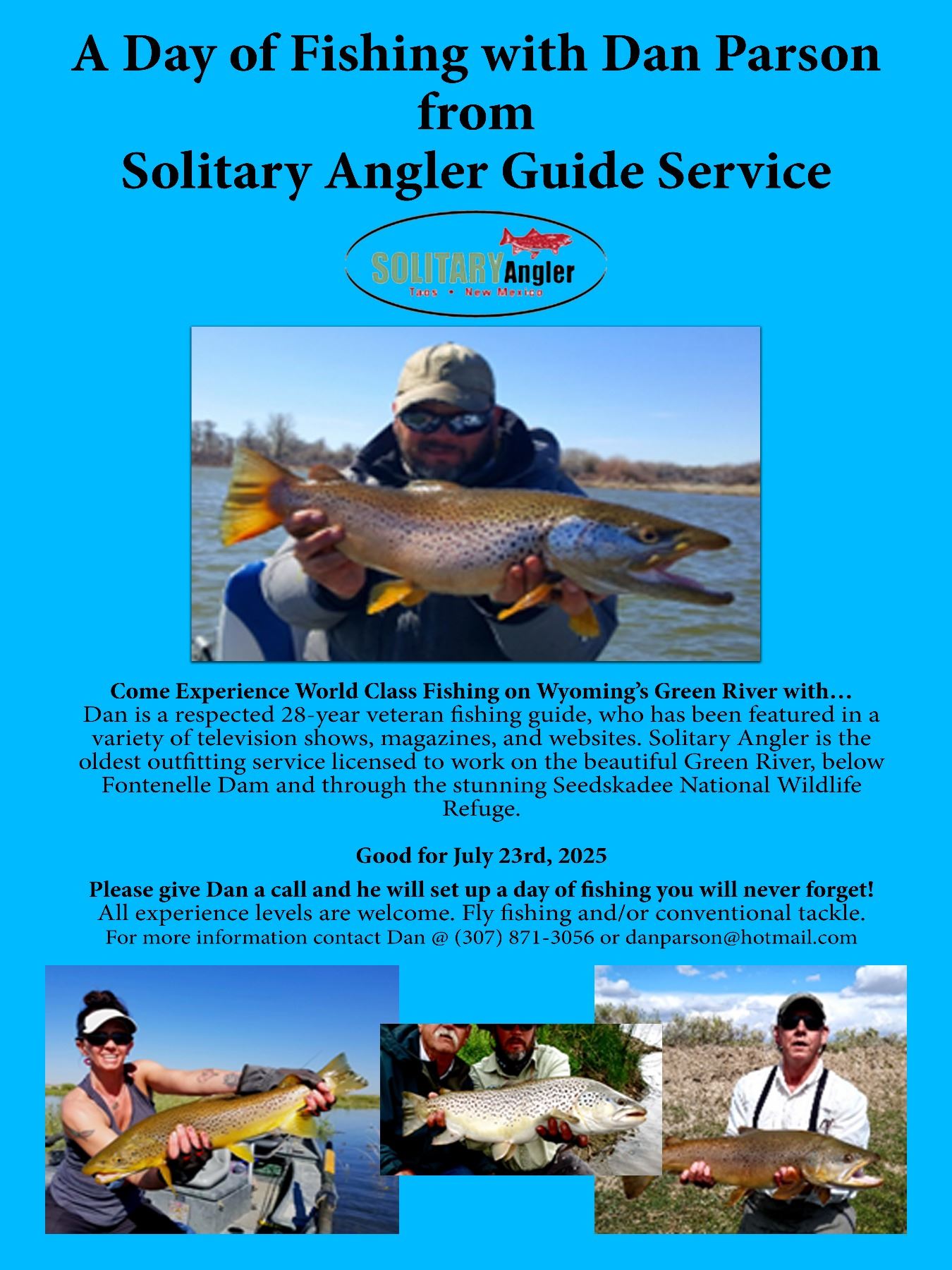 Spend a day of fly fishing with Dan Parson from Solitary Angler Guide Service. Experience world class fishing on Wyoming's Green River. Dan Parson is a respected 28-year veteran fishing guide, who has been featured in a variety of television shows, magazines, and websites. Solitary Angler is the oldest outfitting service licensed to work on the beautiful Green River, below the Fontinelle Dam and through the stunning Seedskadee National Wildlife Refuge.