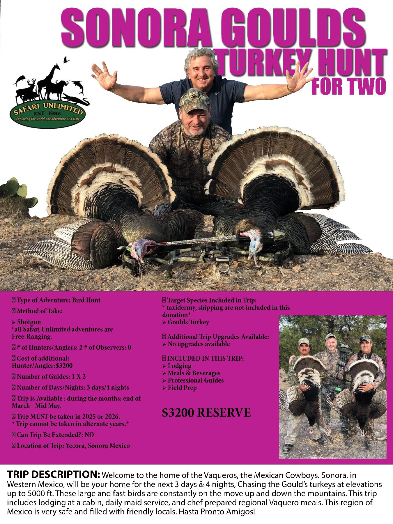 Lot 130 Sonora Goulds Turkey Hunt for Two