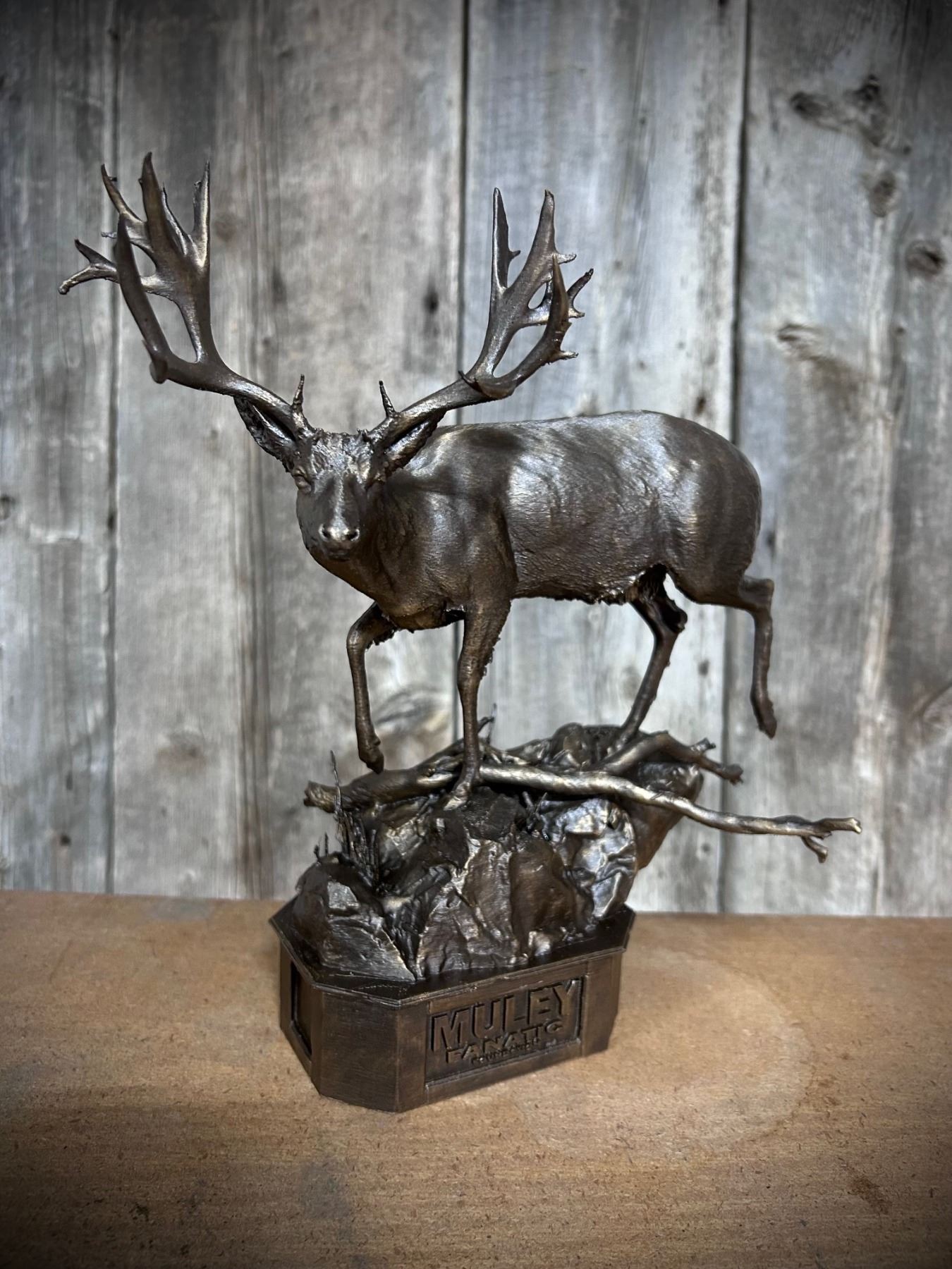 Be the owner of this great table piece. A replica of a Wyoming poached mule deer name "Big Boy" in Baby Booner style. This is in bronze color, not a bronze material. This is another one-of-a-kind piece of art.