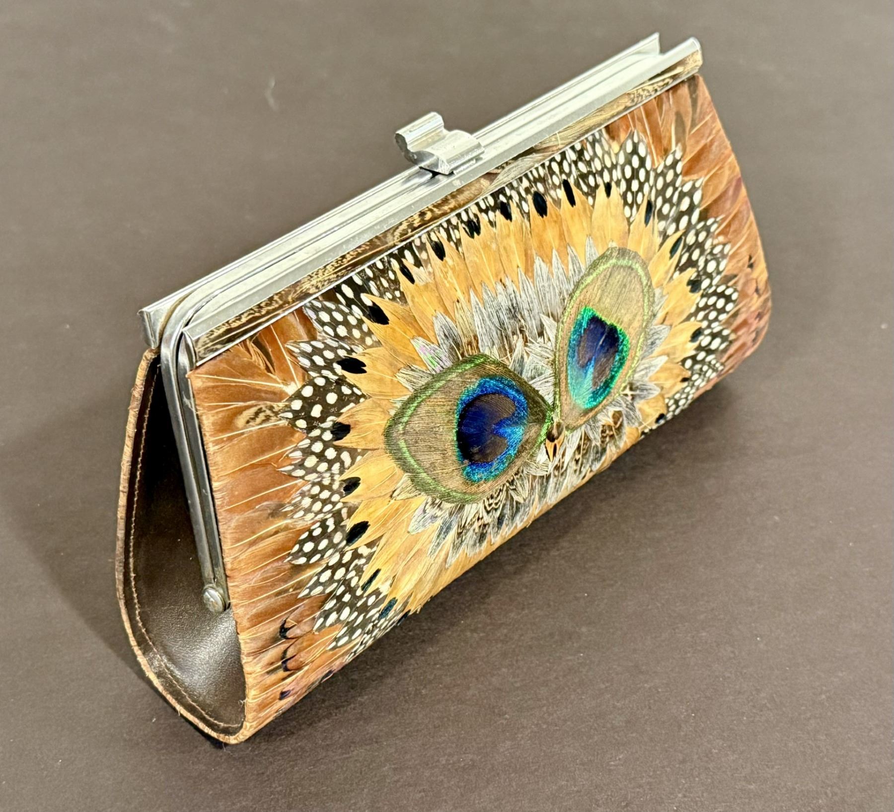 Lot 7 Rare and Vintage Peacock and Pheasant Feather Clutch with a 1-in-4 chance to win a Kimber Micro9 Sap