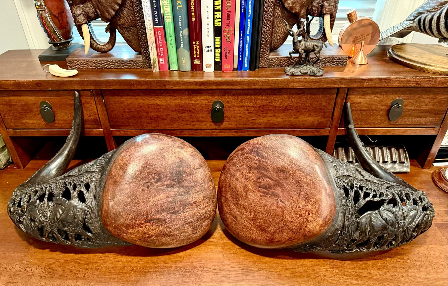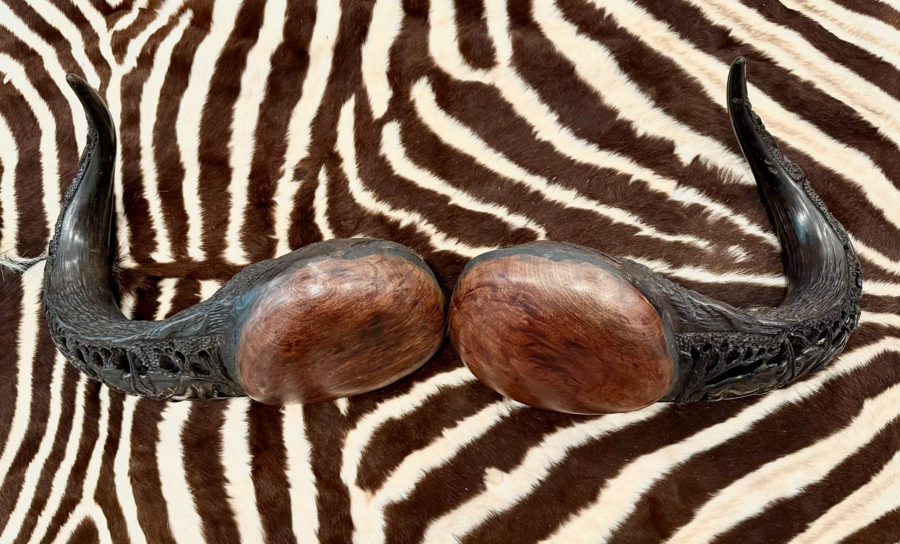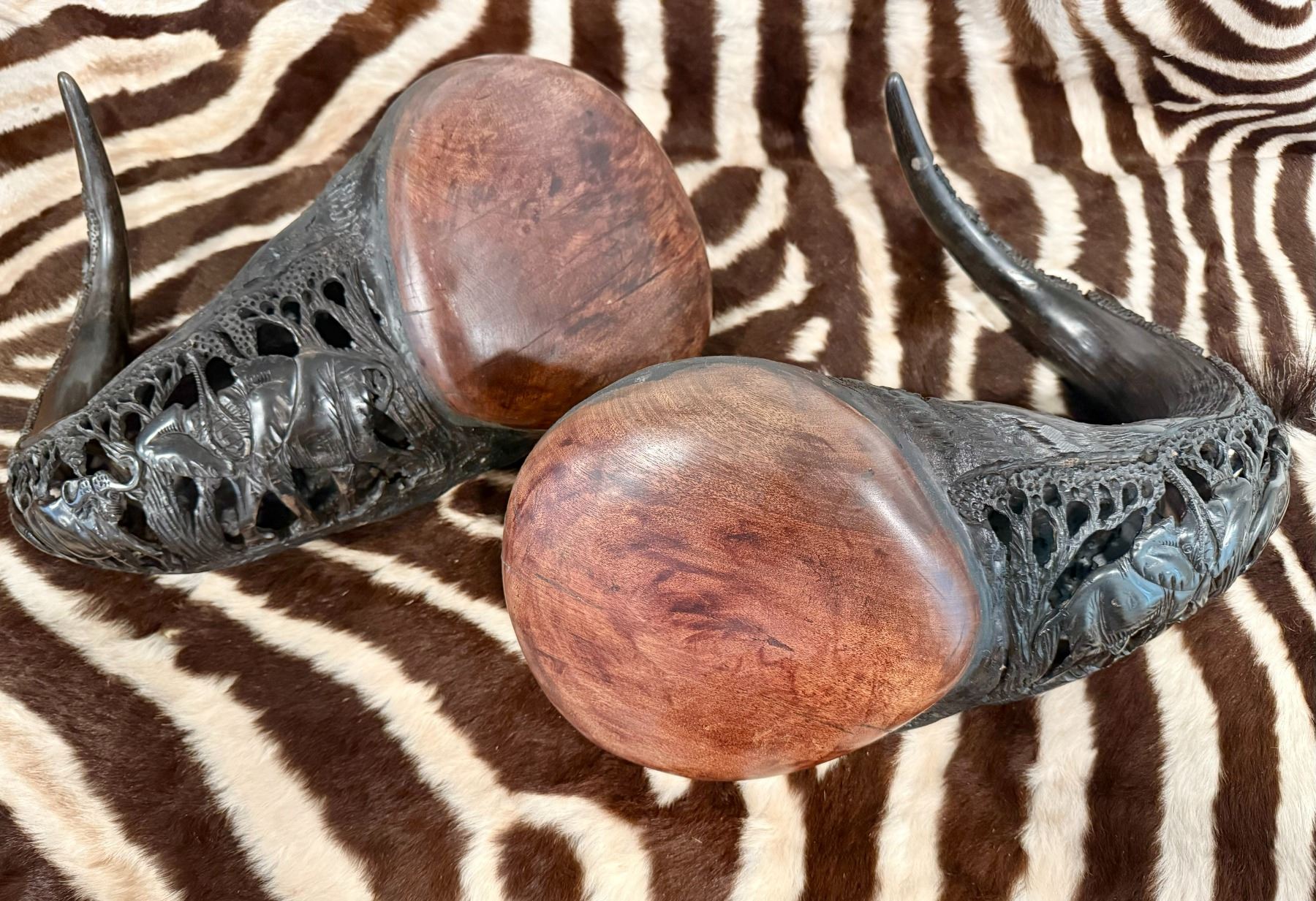 Lot 24 Cape Buffalo Carved African Horns