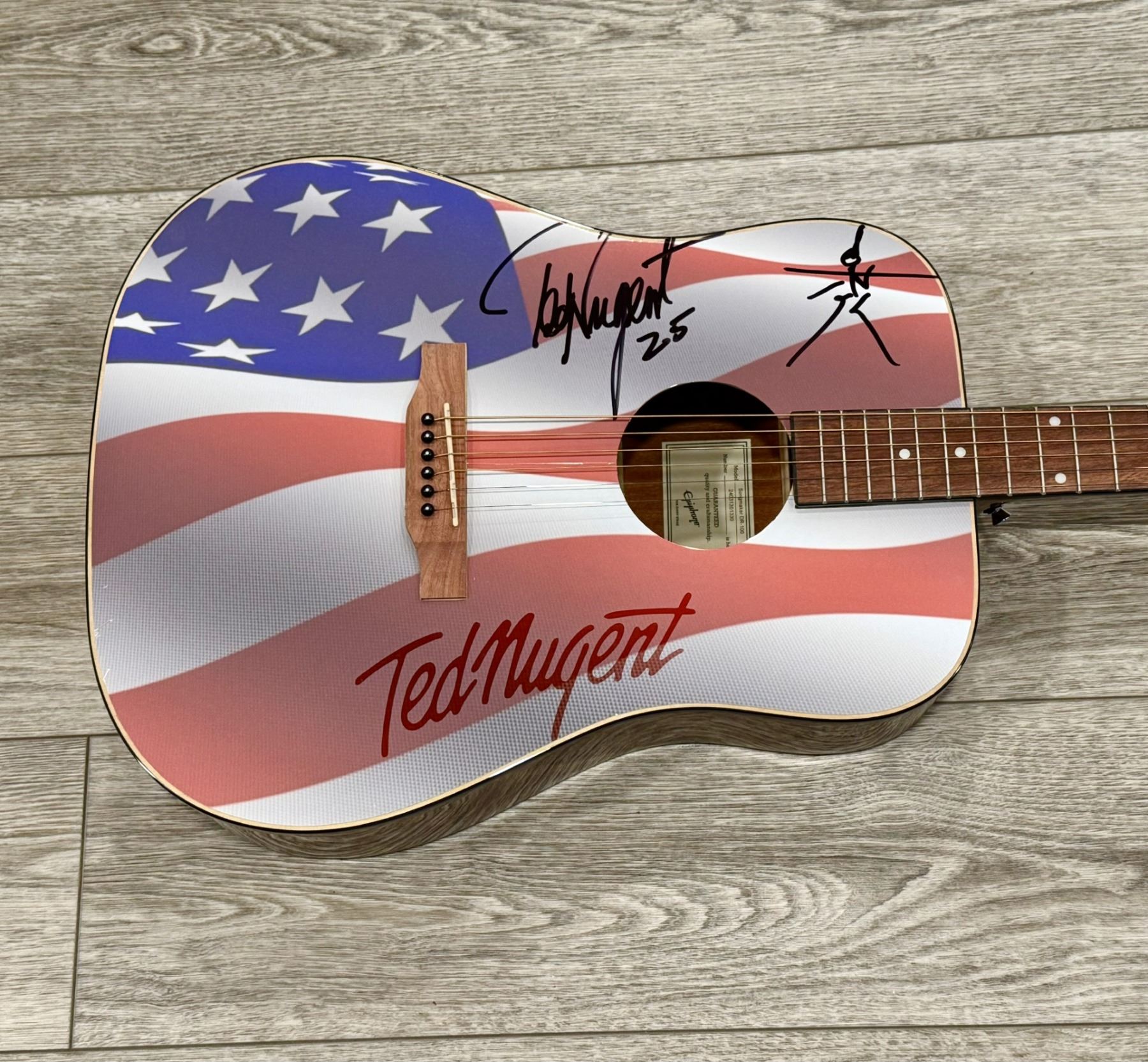 Lot 26 Ted Nugent Signed American Flag Guitar