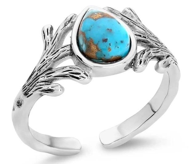 Embrace the natural beauty of the outdoors with the Turquoise Haven Open Ring. This ring features a turquoise stone. Silver antlers surround the stone, creating a captivating look. One size fits most.
