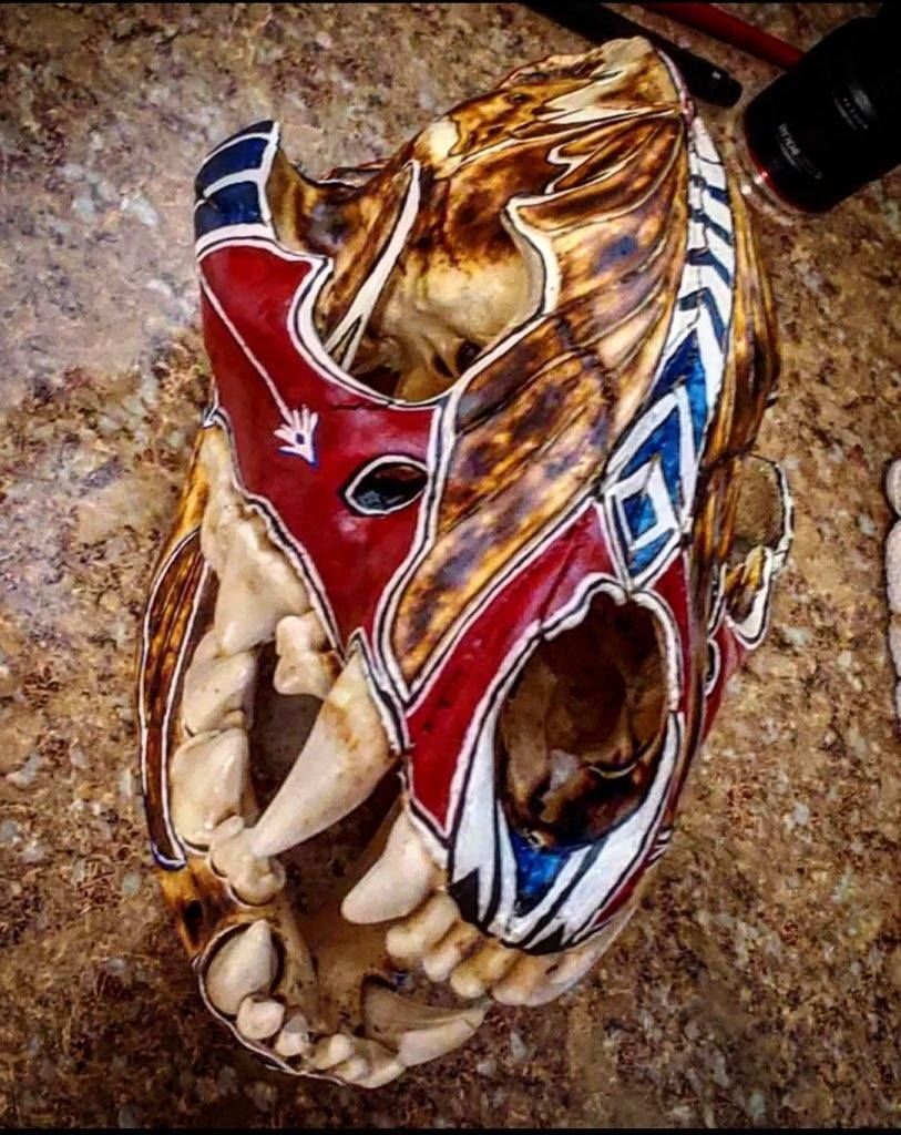 Lot 45 Carved Hyena Skull by Nevada Grassie