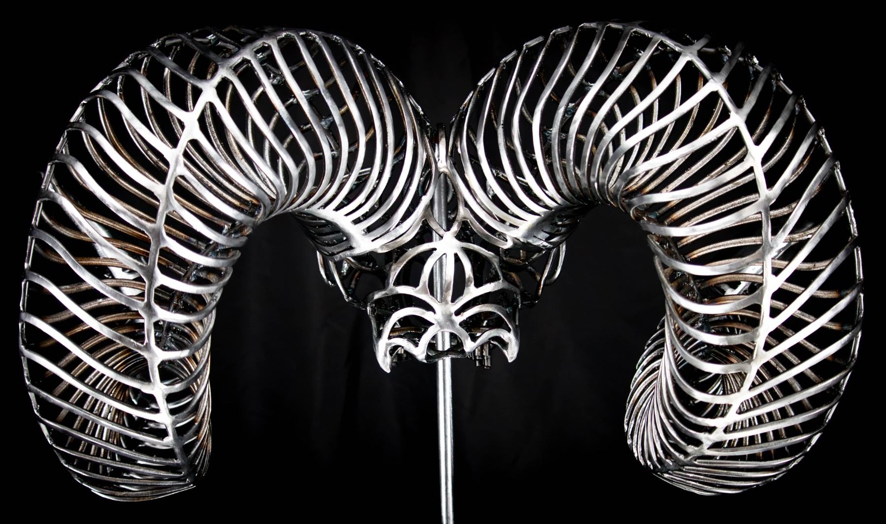 DONATION: The most unique piece of art your will ever own. This beautiful bighorn sheep skull is made of solid metal rods and measures 25"W x 20"D x 15"H and weighs 22lbs.