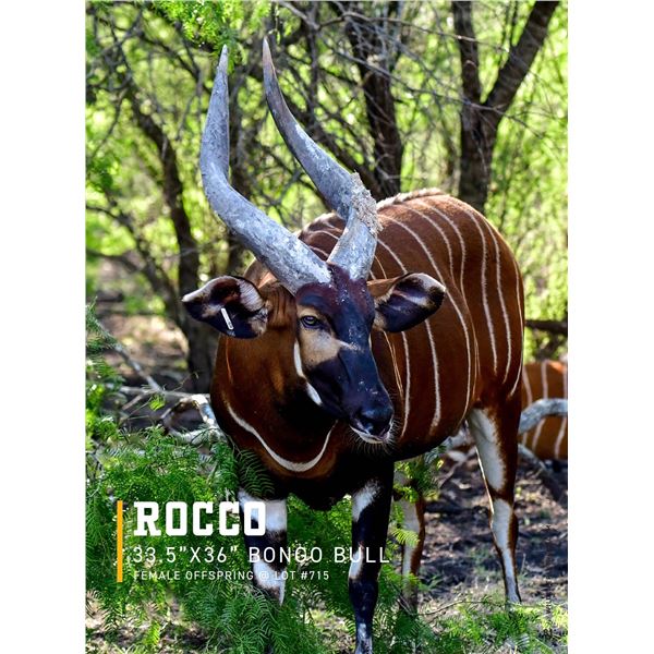 One yearling female Bongo sired by Rocco our 36" Bongo bull. This female is coming from a very calm herd.