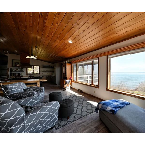 Off the main living area, we have a walk-through bonus room with two queen beds perfect for kids as you make your way to the North section of the house. Another beautiful Lake Superior view awaits with two bedrooms attached to the second living space boasting a 65” TV. In bedroom number one there are two additional queen beds with an attached walk-in closet and bathroom. Bedroom number two is hidden behind the wet bar with an antique sliding door. If you make your way downstairs on the north half of the house, you will find three more queen beds waiting for you as well as a walk out to the huge cedar deck.