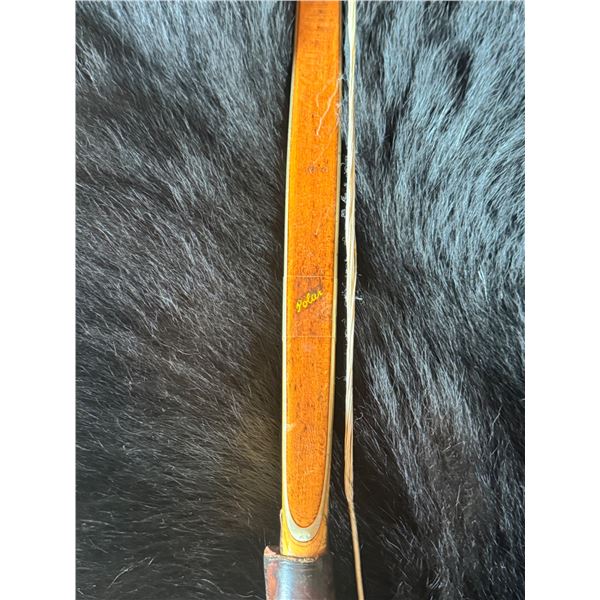 1950 Bear Polar. First year of production for this model. Limbs are reinforced with scrap WWII B-17 aluminum. While not known to be especially durable, this fine show piece is a great edition to any collection representing both the history of archery, our club and our country.