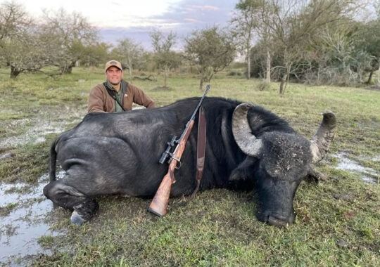 5 Day hunting package for 2 hunters w/ 2x1 guild with Catena Safaris and Nomad Outfitters. Free range big game hunt and Golden Dorado fishing at Estancia Laguna Salvaje Lodge in Corrientes State, Catena Safais, Argentina. (4 days of hunting and 1 day of fishing) 5 days of accommodations with meals included. Full board accommodations based on double rooms and private bathroom, (laundry and WIFI). Dine with wine and/or beer and international chef service. Species available: Free range water buffalo, axis, Blackduck and wild boar. 1 wild boar trophy per hunter. Each hunter must take 1 extra trophy. Land transportations by cars and 4wd vehicles. Primary trophy preparation. Booking terms and conditions: (please read) $1000 Booking deposit per guest will be required to lock dates. Csa cannot book a date without any commitment from the hunter. Safari dates: Oct/Nov 2025 or 2026, or Feb/Mar 2026 Hunt Years. Purchaser is responsible for license (approx. $250) and tag (approx. $120). Firearm permit is required.