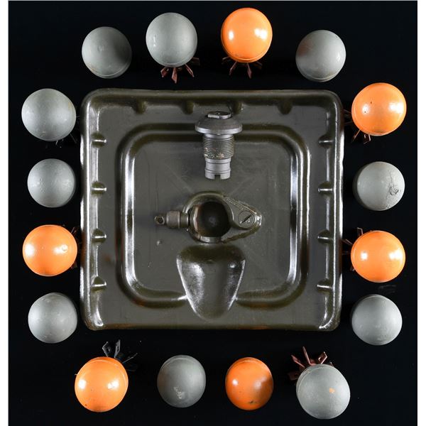 HAMILTON & SONS FIREARMS. DESTRUCTIVE DEVICE. Cal. 60MM. S# PKM601. Bbl. 30". The U.S. M19 60MM Mortar was developed during WWII to serve as a portable, lightweight mortar system that could deliver high angle fire from a reasonable distance while being fielded by ground troops. First introduced in 1942, it was used to deliver High Explosive (HE) rounds, Illumination Rounds & High Volume Smoke Rounds. The average muzzle velocity of these rounds was approximately 550 feet per second, w/ an effective range of over 5500 feet. It replaced the M2, and offered the ability to be trigger fired, rather than just a strait drop fire. It also utilized a smaller base plate than the M2 to cut back on unnecessary weight. Its use was short lived as it couldn't retain the accuracy of the M2 without the heavy base plate, and when outfitted w/ it, it was actually heavier than the M2 it was designed to replace. Though its military use in the U.S. was relatively short lived, it did see action in WWII, the Korean War and Vietnam. It is still in use today in the military of other nations. This example is painted an attractive shade of OD Green & retains the original style sling / muzzle cap. It has the correct, small base plate. This particular piece was manufactured by Hamilton & Son Firearms and is listed in the NFA Registry as a fully transferable Destructive Device. UNATTACHED ACCESSORIES: Unmarked M2 style base plate & 16 practice rounds (many w/ fins). CONDITION: Finish complete & consistent w/ almost no sign of handling or use. Uniform gray finish on tube & base plate. Bore is bright & shiny. PROVENANCE: From the Lifelong Collection of Brian Linde. NATIONAL FIREARMS ACT DESTRUCTIVE DEVICE REQUIRING BATF TRANSFER BEFORE TAKING POSSESSION. FULLY TRANSFERABLE.(03-1815/JZ). MODERN CLASS III. $3,000-6,000.