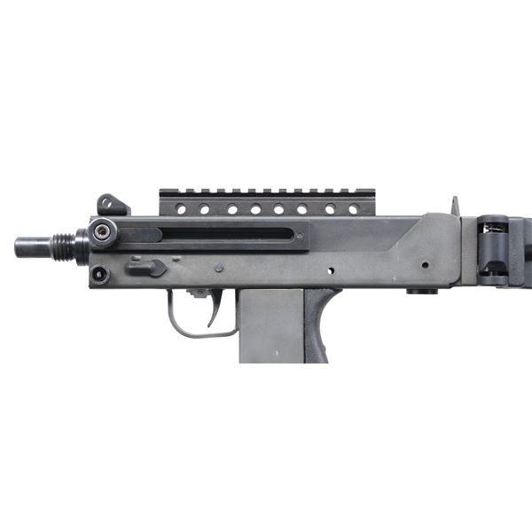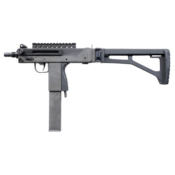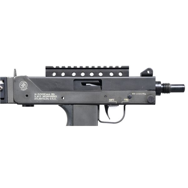 Cal. 9mm. S# 86-0005785. Bbl. 5.5". The younger brother of the infamous MAC-10 may not have moved out of it's shadow as far as Hollywood movies & urban legend is concerned, but as far as becoming a commonly owned civilian SMG, it may actually have taken the top spot. From its introduction to the legislative imposed cutoff of 05-19-1986 the M11 was a popular & affordable entry level SMG. It's low price was only rivaled by its reliability & these little bullet hoses continue to perform just as well several decades later. This particular example mfg. by SWD of Atlanta GA was manufactured in 1986. The company name was an acronym for Silvia Williams Daniel, the prior spouse of Wayne Daniel who owned the manufacturing rights to the Ingram Model 11 as well as the popular Cobray trademark. Finish on exposed metal surfaces is darker on the upper receiver & a lighter gray parkerized finish on the lower receiver. The sighting system on the upper receiver is a simple protected post front sight w/ a corresponding peep sight drilled in an extension at the rear of the receiver. 5.5" picatinny rail on receiver for sight mounting options. Left-side folding stock is far superior in length, fit & function compared to the original wire stocks these were originally built with. Left side, non-reciprocating charging handle on upper receiver. Factory threaded bbl. Left side selector switch. Right side safety parallel to trigger guard. The familiar Cobray snake logo appears on the right rear of the lower receiver. Extended magazine release. Open bolt, blow-back operated, select fire action. Mag-well has been replaced to accept common & reliable Sten mags. MAGS: 3 Steel 32rd. STEN mags. CONDITION: all aspects indicate very little actual use. Parkerized finish on exterior metal surfaces enjoys complete coverage w/ only a few very light drag lines typical of vertical rack storage. Bright bore w/ strong rifling. Fire control mechanism appears to function correctly when cycled by hand. NATIONAL FIREARMS ACT MG REQUIRING BATF TRANSFER BEFORE TAKING POSSESSION. FULLY TRANSFERABLE. PROVENANCE: From the Lifelong Collection of Brian Linde. (03-1826/JZ). MODERN CLASS III. $6,000-9,000