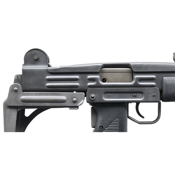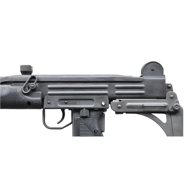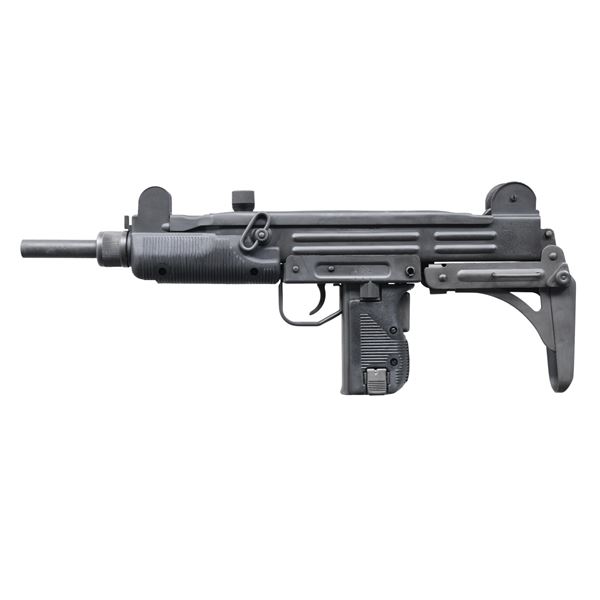 INDUSTRIES / VECTOR ARMS HR4332 UZI SUBMACHINE GUN. Cal. 9mm. S# 103604. Bbl. 10 1/4". 1 of only approx. 3,300 Group Industries HR4332 receivers purchased and assembled by Vector Arms with quality South African parts and components. The HR4332 receivers are amongst the most desirable for an NFA Uzi, being specifically heat treated for use as machine guns. This example is stamped "VECTOR ARMS, NSL, UT" on the left side of the receiver, followed by the model and cal. designations, above Group Industries logo and mfg. information. Right side of the receiver is marked with the S#. Selector is marked "A", "R", and "S". Metal components exhibit a parkerized finish overall. Grips and forend are comprised of grooved black polymer. Model A pattern post front sight, with "L" flip-up rear sight, graduated "100" and "200". Distinctive collapsible Uzi pattern buttstock, with Model B pattern sling swivel, featuring 360 degree rotation. Mag. is absent. UNATTACHED ACCESSORIES: generic white cardboard box. CONDITION: extremely fine, with metal components retaining bountiful amounts of their original factory parkerized finish, exhibiting few minute superficial handling marks, with some very light wear present on the receiver cover from cycling of the action. Brilliant mirror chrome lined bore, exhibiting well defined rifling throughout. Black polymer furniture shows a few light superficial marks from handling and storage, but otherwise remains excellent overall. An extremely fine example of an always desirable Group Industries / Vector Arms HR4332 submachine gun. PROVENANCE: From the Estate of Ivan Lee Shapiro. NATIONAL FIREARMS ACT MG REQUIRING BATF TRANSFER BEFORE TAKING POSSESSION. FULLY TRANSFERABLE. (03-1768/MLW). MODERN CLASS III. $9,000-12,000.