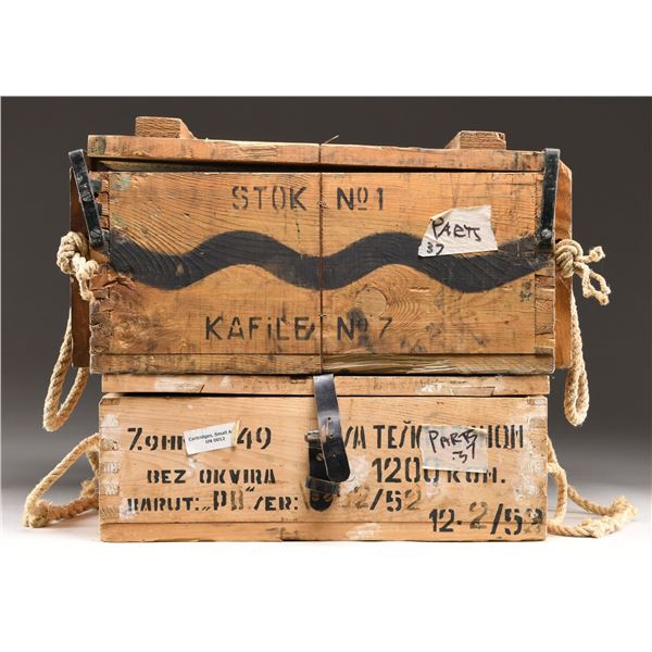 Nice Czech ZB37 machine gun parts kit, including: 1 torch cut receiver, 2 receiver top covers, 2 feed trays, 2 trigger assemblies, 2 complete bolt assemblies (bolt, bolt carrier, and piston), 3 detachable shoulder stocks, as well as several other small parts and components. CONDITION: good, with parts retaining the majority of their original blue finish, exhibiting some areas of wear, as well as some scattered marks from handling and storage. Wood stocks show scattered marks and impressions from handling and storage, but otherwise remain sturdy and serviceable. PROVENANCE: From the Estate of Ivan Lee Shapiro. (02-23501/MLW). $500-1,000.